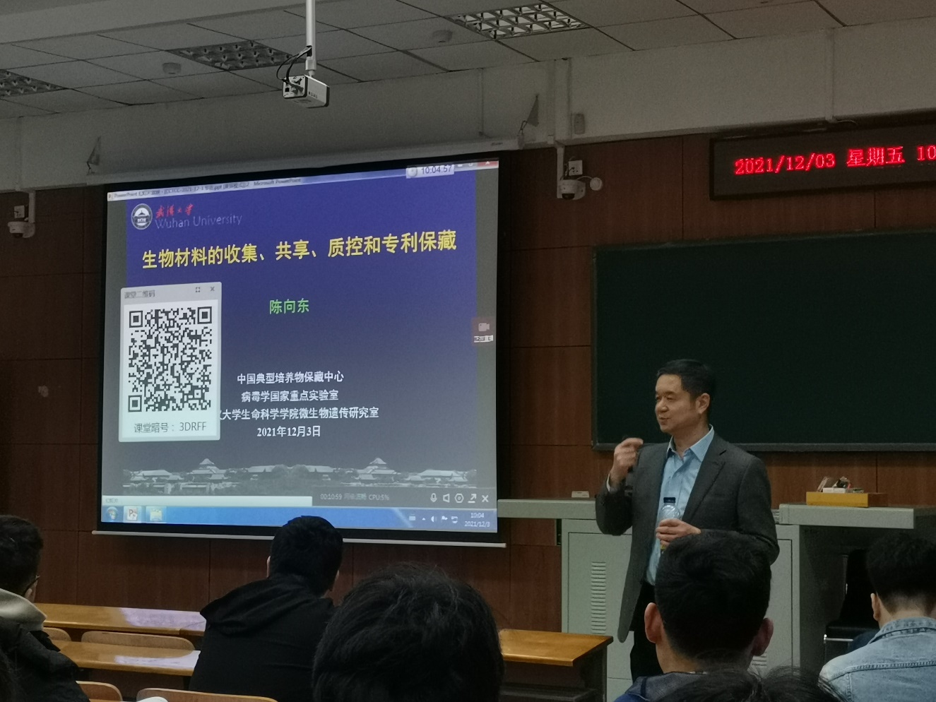 (通讯员 周芷菡)12月3日上午,研究生高级微生物学课程邀请武汉老员工命科学公司陈向东教授进行特色课程授课,作了题为“生物材料的收集、共享、质控和专利保藏”特色报告,并将其开放为微生物学前沿论坛。本次报告由公司bv伟德国际1946孙明教授主持。