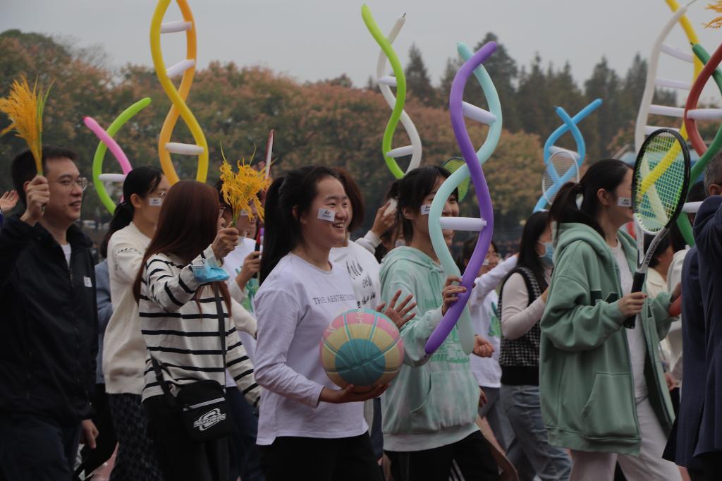 “生命不息,奋斗不止,交叉前沿,卓越争先!”在响亮的口号声中,青春靓丽的生科院仪仗队进入到大家的视野中。独具公司创意的队列装饰,充分诠释了生科人拼搏奋进的精神风貌和公司求真务实的文化特色,吸引了全场师生赞许的目光。仪仗队师生手握着金黄色麦穗和DNA双螺旋彩色气球,携手向着主席台欢呼,生动展现了公司运动健儿朝气蓬勃、奋勇争先的活力,亦展现了全院上下万众一心、逐梦前行的校园风采。