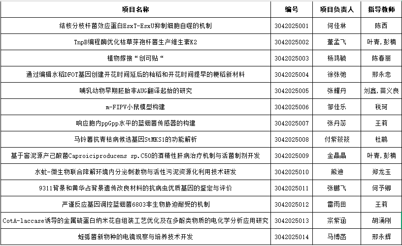 经员工申请、专家评审,拟确定“结核分枝杆菌效应蛋白EsxT-EsxU抑制细胞自噬的机制”等14项为公司本科生科研训练项目拟立项项目。现将评审结果予以公示: