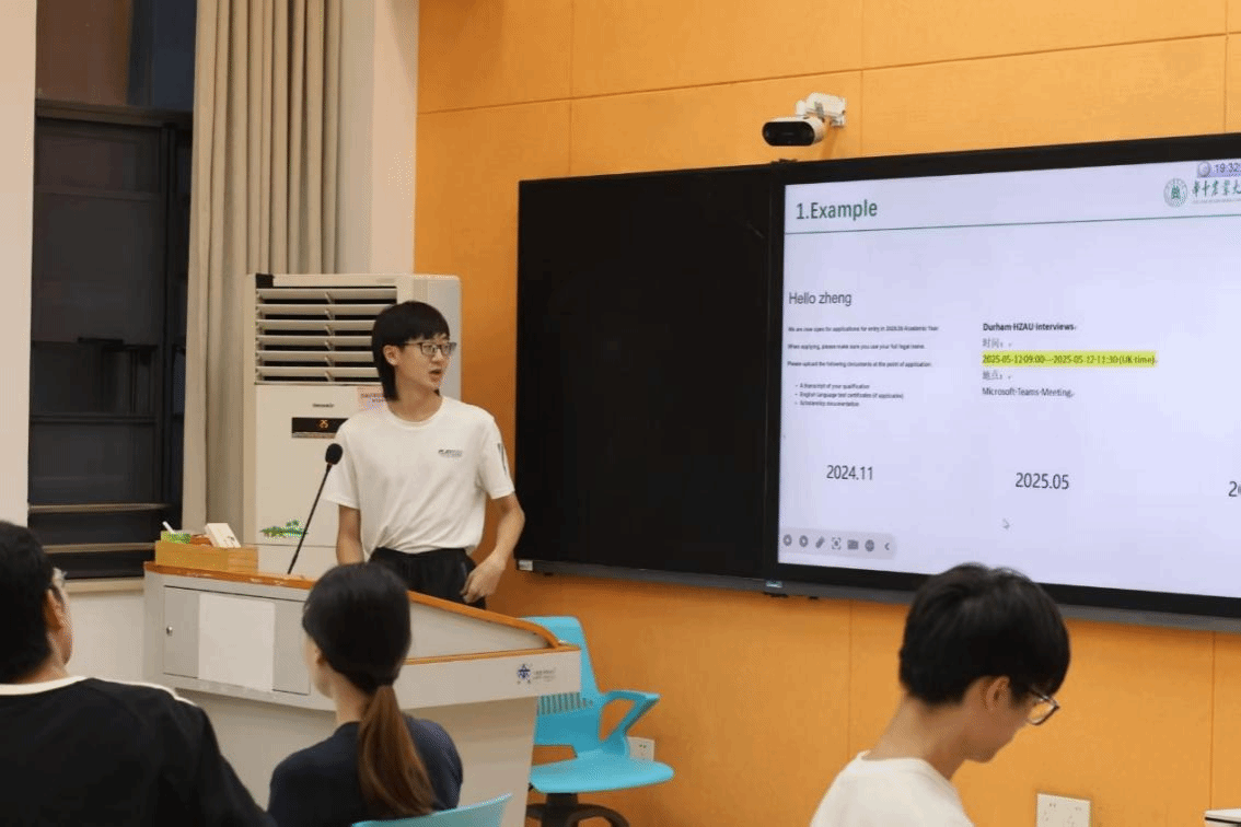 接着,拟录取杜伦大学的朱正同学聚焦海外留学赛道展开分享。他向大家具体介绍了申请海外留学的流程,并详细说明了申请留学简历中应包含的重点内容,为意向留学的同学搭建起从流程规划到文书精修的完整方法论体系。