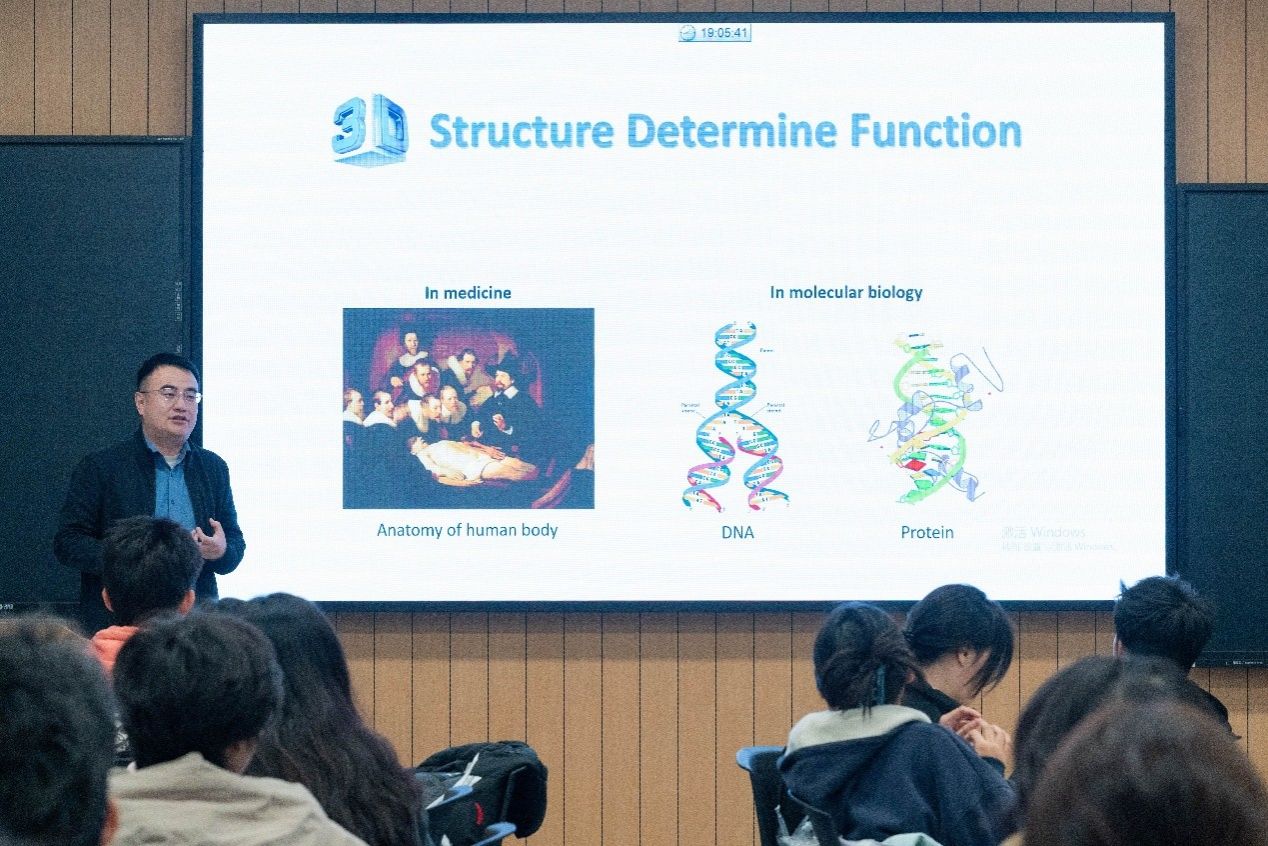 湖北洪山实验室薛宇教授作了题为“人工智能生物学”的交叉学科前沿分享,重点介绍了团队在蛋白质化学修饰生物信息学领域的研究成果,例如利用网络拓扑分析技术挖掘激酶新功能的创新实践。他特别提及实验室研发的“蓝猫”和“荀子”两款AI生物学家工具:“蓝猫”可快速分析蛋白质修饰位点,“荀子”能预测基因互作网络,二者大幅提升了生物科研的效率与精准度。针对员工提出的编程学习与科研结合的疑问,薛宇教授给出具体建议,他表示低年级员工应先夯实Python基础,通过实操Biopython库等工具,逐步积累生物信息学的应用能力。