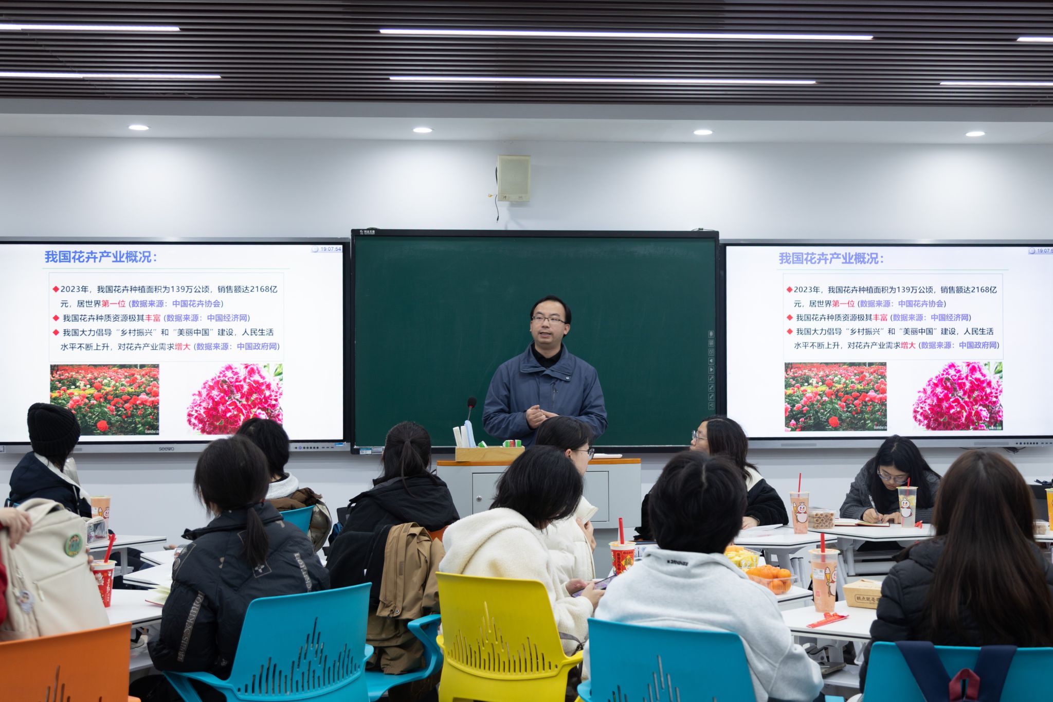 师生交流环节,同学们自发围坐成多个讨论圈,与教授近距离互动。张帆以生动比喻点明,当前常见的鲜切花保鲜方法恰似“西医”,见效快却治标,因此团队正从基因层面探寻更根本、持久的“治本”之策。作为班主任的李青,结合自身经验为学子们的学业与科研成长给出恳切建议:既要广泛研读文献、积极交流协作,善用公司资源筑牢本科基础;也要保持开放心态,在广泛涉猎中探索多元发展路径,找准自身热爱与擅长的领域;同时需涵养“干一行、爱一行”的热忱与直面失败的韧性,在试错中不断进步。她特别强调,大一是成长的重要分水岭,鼓励同学们专注自身提升,与同伴携手共进,以勤奋、韧性与创新思维勇迎挑战。