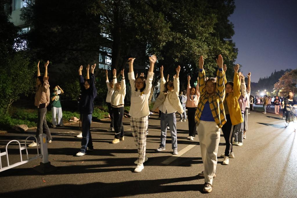 团体操小组练习(刘忻一 摄)
