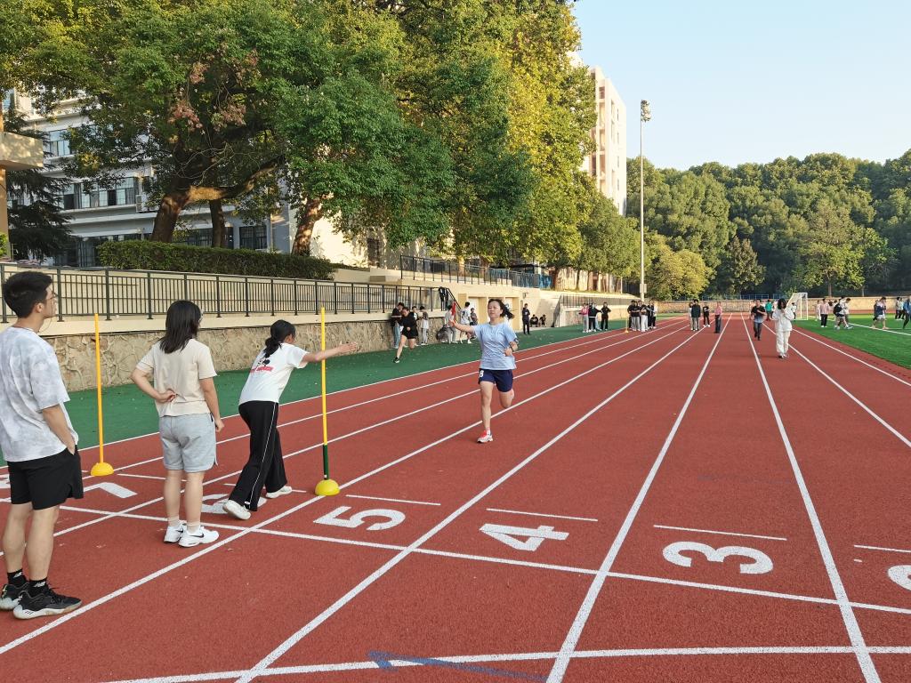 女子50米接力训练(赵睿成 摄)