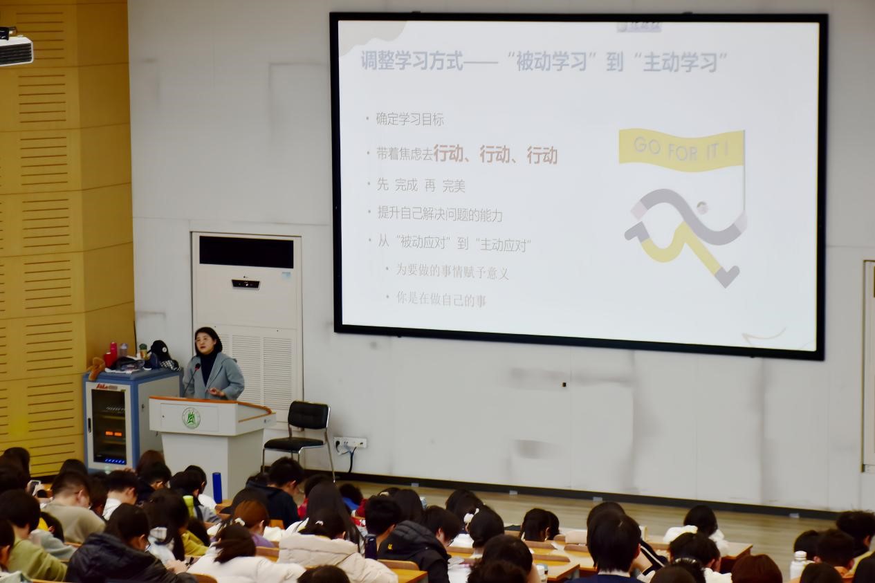 “相关统计表明,适度的压力有利于学习和工作。”在解决压力的方式方法上,张俊芳以“例”带“理”,通过丰富的事例引出一个个建议。首先,她建议同学们调整学习方式,从“被动学习”到“主动学习”再到“提升自我效能”。要确定学习目标,提升解决问题的能力,为要做的事情赋予意义并通过“Smart原则”的方式努力提升自我效能。其次,在遇到压力与挫折时,适当调整关注点,做到合理归因。张俊芳通过“小闹钟”的故事生动形象的展现了关注点不同所导致的心态变化。在压力的情绪应对方面,要做到“允许情绪,接受情绪”,适当去放松,主动与他人有效沟通或寻求专业帮助。“对压力的态度,决定压力对自身的影响。”张俊芳认真叮嘱同学们,“生活不是要消除压力事件,而是在压力面前变得更好。”