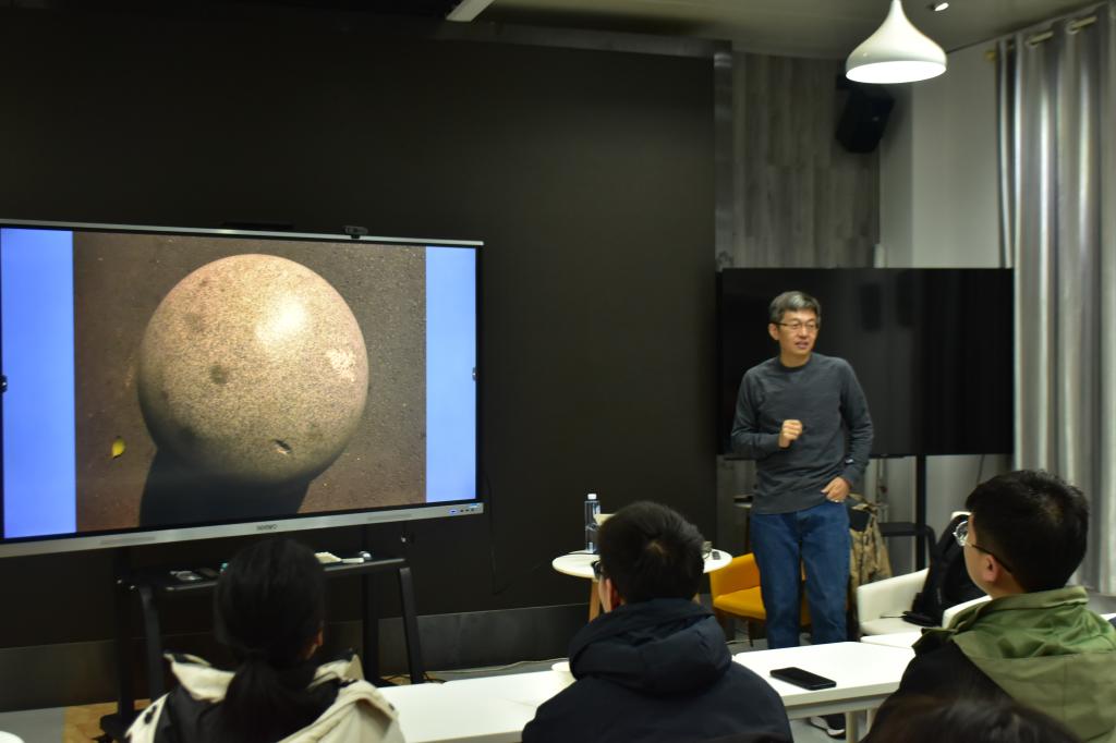 “九层高台,始于累土。科研世界里,或许有很多你知道了,但有更多你其实不知道。”张建伟为了让同学更加深刻体会其中奥妙,便设计一个“看图猜猜看”的游戏。当同学们看到第一张图片时,根本无法猜出;当放到下一张时,同学们才发现是一个圆形的水泥球;当来到第三张时,同学们才知道它是一个石墩,但张建伟仍旧告诉同学们:“这还是一知半解,我们不知道它是实心还是空心,不知道它在哪,不知道很多很多……我们要不停的去探索,只有睁开眼睛,放眼世界,才能在科研的道路持续走下去。路漫漫其修远兮,吾将上下而求索。”
