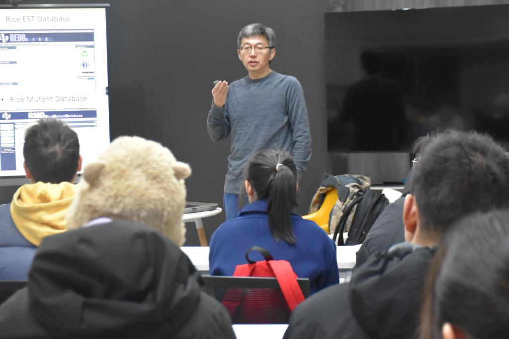 “放眼看世界,是为了更好的了解世界”。当谈到“认识世界,开阔眼界”对于生物学研究的重要意义时,张建伟教授结合自己求学科研经历讲到:“在美国留学期间,我结识了许多志同道合的朋友,了解到世界的水稻基因库建立情况,为之后的科研攻坚确立了方向;在科研工作期间,我曾多次前往沙特阿拉伯调查当地的耐旱水稻,该品种水稻蕴含的巨大优势可以扩大我国水稻的种植面积,增加水稻产量,解决主粮安全问题。”在分享科研前沿时,他告诉同学们:“优秀科学家及科研团队多是学会放眼看世界,才能做好科研,服务全人类。”