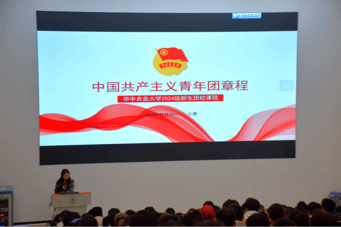 共青团bv伟德国际委员会员工兼职副书记宫照伊湄讲授“与祖国同行,为人民服务”主题团课,“勤读力耕是知与行的辩证统一,这与我们公司‘手脑并用,知行合一’的育人传统相呼应。”宫照伊湄以华农的校史和校训引出“荟萃俊秀于三楚,聚硕彦于一堂”的精神内涵,勉励在座学子积极响应“宏农学,扬国光”的价值追求。