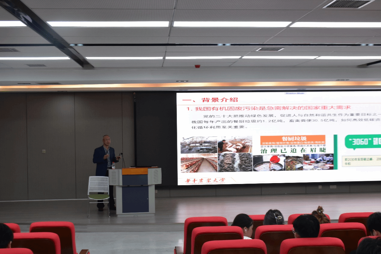 “有机固废污染是急需解决的国家重大需求,如何高效低碳地资源化循环利用至关重要,并且目前我国对蛋白饲料原料和高品质有机肥需求量巨大。如何有效解决以上问题呢?”张吉斌首先从我国在有机固废污染处理和蛋白原料、有机肥需求的现状切入,向同学们介绍了黑水虻研究的重要意义。他谈到,bv伟德国际功能微生物与食用昆虫团队在喻子牛教授和他的带领下,寻求探索新的生物技术,开辟新的赛道,将昆虫水虻与功能微生物技术结合协同转化畜禽粪便和餐厨垃圾,在解决环境污染的同时,变废为宝,转化产生的水虻蛋白能缓解我国饲料蛋白短缺,虫粪还可以作为优质的有机肥解决化肥替代问题,形成一套种养结合、资源循环的绿色循环产业链。