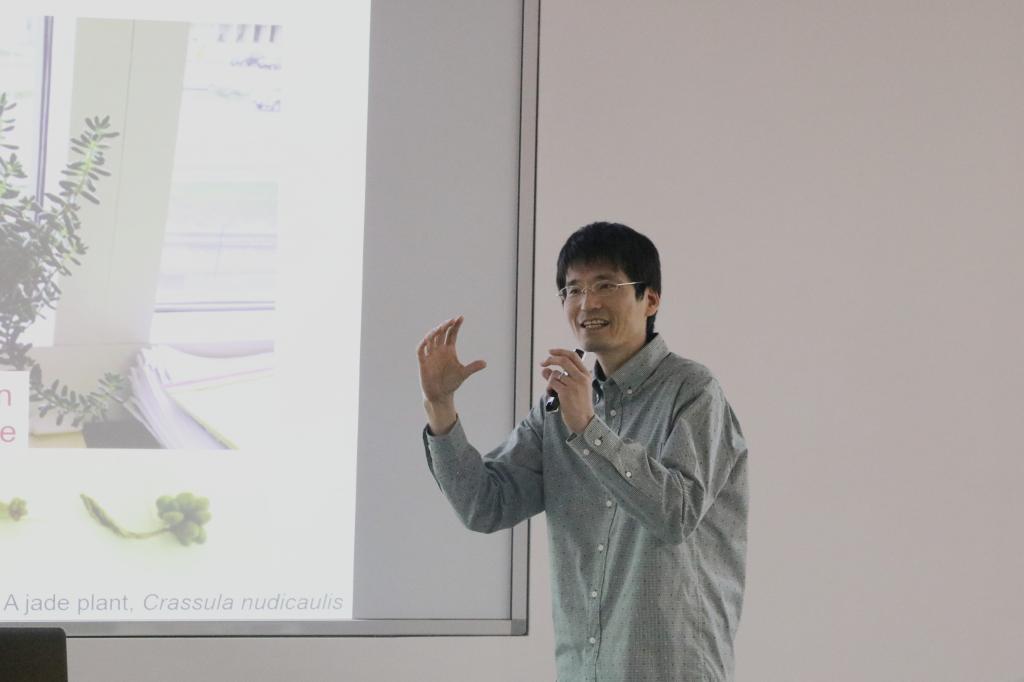 来自日本宇都宫大学的Yusuke Tamada博士向同学们介绍了宇都宫大学,并分享自己的科研成果以及研究方向。宇都宫大学是一所历史悠久,环境优美的国立大学。交流项目中员工可以自由地提出自己的想法,很多有趣的想法可能都能在实验中实现。“付出多少就能得到多少,同学们在交流期间可以自由安排除实验以外的时间,但希望大家在做实验项目期间积极参与,自觉是鞭策自己的唯一方法。”Yusuke Tamada博士提出自己的建议和看法。他十分鼓励同学们大胆分享自己的想法,思想的碰撞对实验创新有很大的帮助。最后他用标准的中文“谢谢”结束了自己的分享。