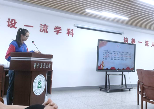 会议第二项,由生物科学本科生党支部的刘增同志领学国家安全相关内容。刘增同学将相关内容分为总体国家安全观、安全生产重于泰山、生物安全、国家安全法四个部分进行详细的讲解,并着重强调了生物安全相关部分,生物安全关系到国家总体安全,我们应完善生物安全治理相关体系,筑牢国家生物安全防线,增强生物安全保障能力。