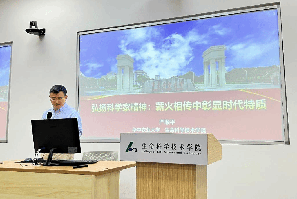 活动第五项,教工支部书记严顺平同志以“弘扬科学家精神:薪火相传中彰显时代特质”为主题讲授“教授红讲堂”党课示范课。他分别从“什么是科学家精神”和“如何弘扬科学家精神”两个方面带领师生党员共同感悟“科学家精神”的深刻内涵和实际意义。通过举例钱学森、陈华癸、陈焕春、傅廷栋等优秀科学家的杰出事迹,引导大家深刻体会以“爱国、创新、求实、奉献、协同、育人”为核心的新时代科学家精神。他总结道:“习近平总书记给公司本禹志愿服务队的回信中提出‘与祖国同行,为人民奉献’的期盼,希望我们科研工作者和广大青年学子不忘初心、坚守本心,始终心怀祖国!”