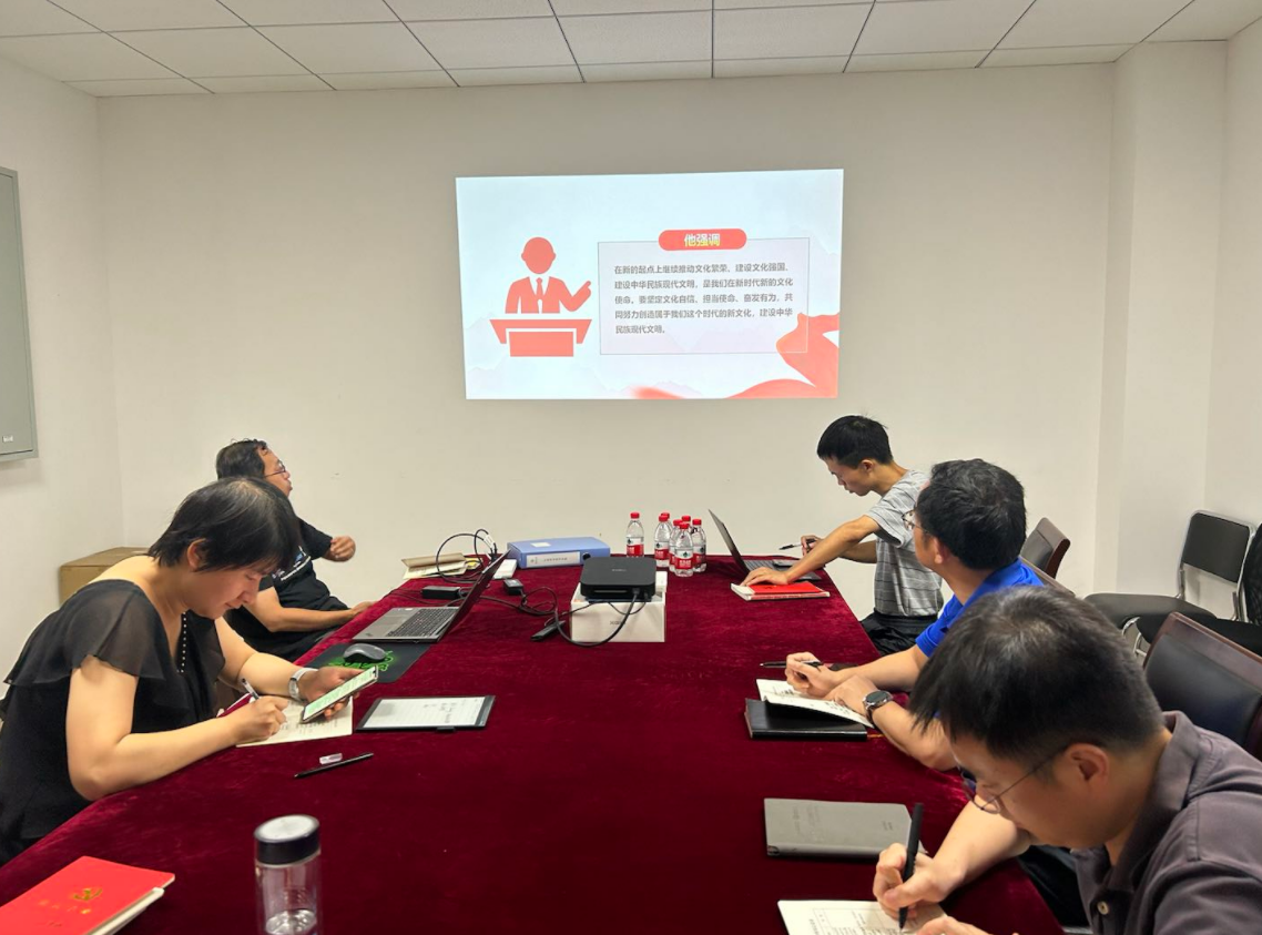 首先,由何春江同志带领大家学习习近平总书记在文化传承发展座谈会上的重要讲话精神。习近平总书记在讲话中强调,在新的起点上继续推动文化繁荣、建设文化强国、建设中华民族现代文明,是我们在新时代新的文化使命。要坚定文化自信、担当使命、奋发有为、共同创造属于我们这个时代的新文化,建设中华民族现代文明。习近平总书记的重要讲话从党和国家事业发展全局战略高度,对中华文化传承发展的一系列重大理论和现实问题作了全面系统深入阐述,具有很强的政治性、思想性、战略性、指导性。