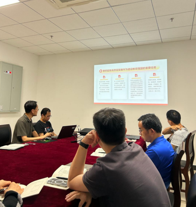 会议最后,金安江同志提出几点建议与支部成员共勉。一是加强政治理论学习,要以习近平新时代中国特色社会主义思想为指导,做到以学铸魂、以学增智、以学正风、以学促干。二是要围绕国家重大战略需求开展有组织科研。建设教育强国,龙头是高等教育。作为高校科研工作者,要根据自身特点锚定国家重大战略需求开展科学研究,进行长期的布局及努力。三是要注重研究生的分类培养,注重将优质科研资源转化为育人资源,引导员工立志科研报国。