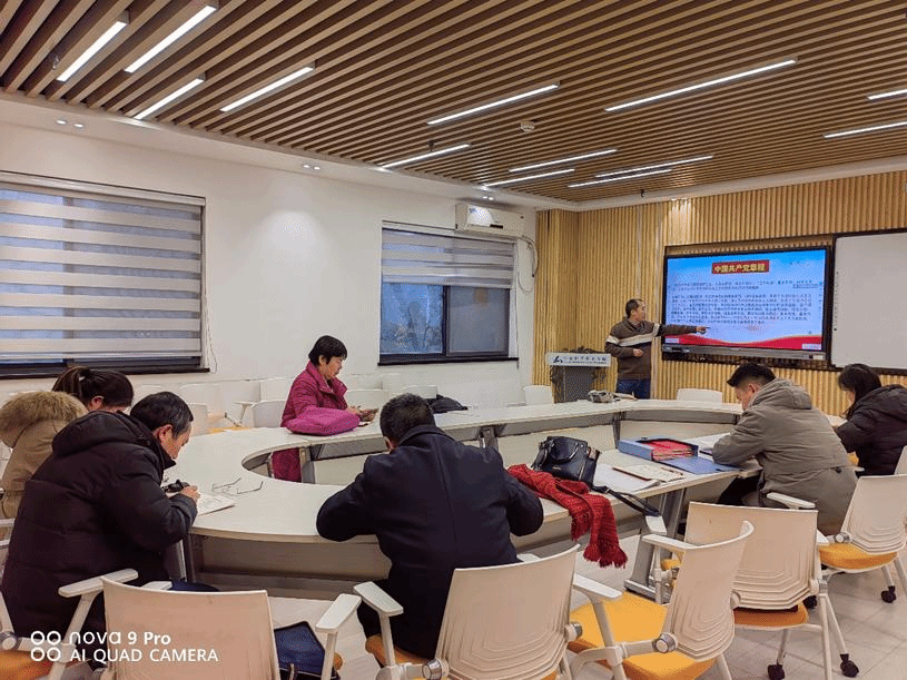 会议伊始,曹扬荣领学《中国共产党章程》。他介绍到,中国共产党以马克思列宁主义、毛泽东思想、邓小平理论、“三个代表”重要思想、科学发展观、习近平新时代中国特色社会主义思想作为自己的行动指南。我国正处于并将长期处于社会主义初级阶段,此时期的基本路线是:领导和团结全国各族人民,以经济建设为中心,坚持四项基本原则,坚持改革开放,自力更生,艰苦创业,为把我国建设成为富强民主文明和谐美丽的社会主义现代化强国而奋斗。