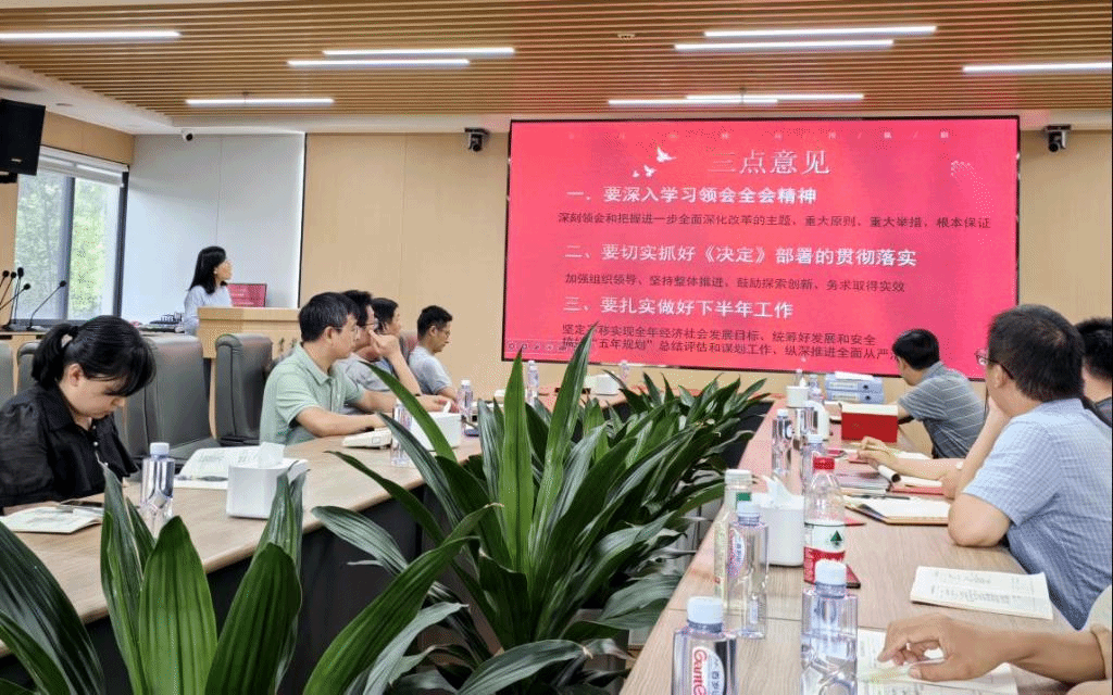 会议伊始,支部开展9月主题党日互动。首先由支部党员王利利同志领学党的二十届三中全会精神。她强调,我们要深入学习领会全会精神,深刻领会和把握进一步全面深化改革的主题、重大原则、重大举措和根本保证;切实抓好《决定》部署的贯彻落实,加强组织领导、坚持整体推进、鼓励探索创新、务求取得实效;扎实做好下半年工作,坚定不移实现全年经济社会发展目标、统筹好发展和安全,搞好“五年规划”,总结评估和谋划工作、纵深推进全面从严治党。