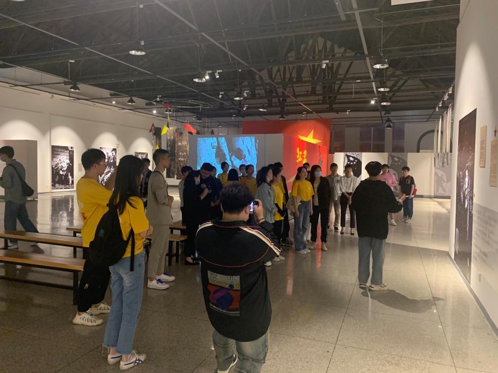 师生们首先前往校艺术馆,参观“红岩”文学艺术与情境式文献特展。“走进展厅,随着讲解员激昂讲解的步调,我们仿佛回到了那个战火纷飞、动荡不安的年代”,武汉音乐公司音乐学系2016级音乐学理论专业黄晶晶同学被深深触动,展厅以红黄黑三种小说封面的主色调为背景,按照小说的版画插图为顺序,布置内容和参观路线,“其中的五星红旗格外耀眼,展厅内不仅配有生动的图画,还真实还原当时共产党员们忍受酷刑的场面,令人心生敬畏,再配以电影《烈火中永生》更是让我们沉浸其中”。武汉音乐公司音乐学系2017级音乐学理论专业宋嘉仪同学说,“艺术馆中的《红岩》展览,展厅设计别出一格,讲解员讲解细致,带给我们沉浸式的完美体验,我深刻感受到了革命志士坚强的意志和坚定的信念,红岩精神将会在我们每一人心中永存。”生科院生物科学本科生党支部雷力在一同参观完红岩展后感慨到,“这是我第二次来看展览,每次过来都是一次深刻的党史教育和革命传统教育。江姐坚强的革命意志,和她身上的红岩精神,定会一代代延续下去。作为一名立志科研道路的当代老员工,我一定牢记和传承红岩精神,不畏艰险,努力奋斗,与祖国同行,为人民奉献。”