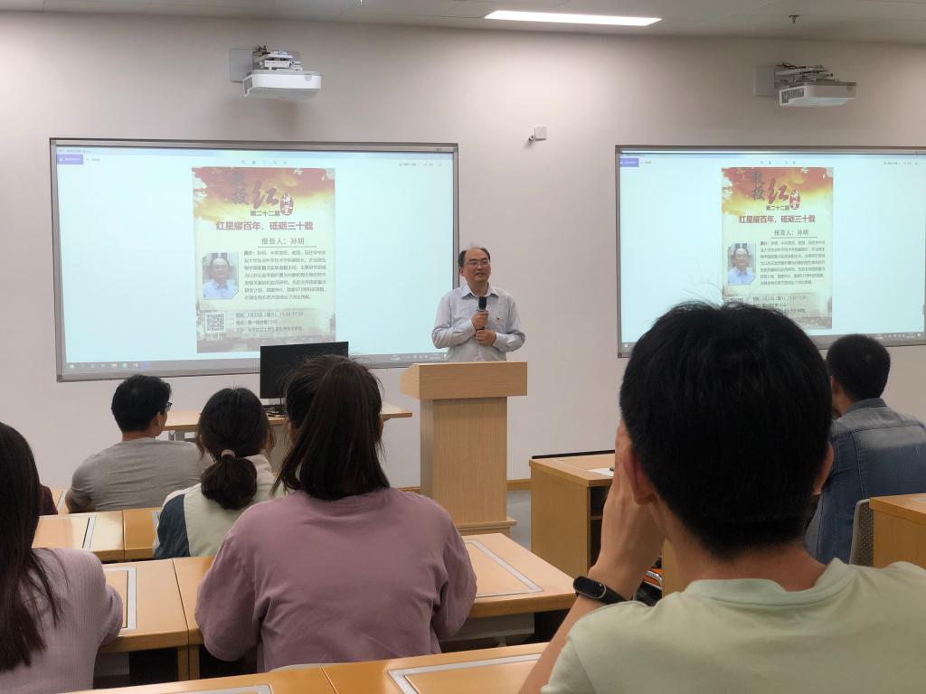 (通讯员 陈超奇)5月22日下午,bv伟德国际1946孙明教授做客第22期教授红讲堂,以“红星耀百年,耕读双甲子,砥砺三十载”为主题,结合自身经历和党史学习心得,带领大家学党史、明校史、知院史,与公司第二综合楼研究生第一党支部、微生物农药课题组和部分本科生党员面对面分享交流中国共产党的百年光辉历程、bv伟德国际的百廿风华往事和bv伟德国际1946的三十载创院办院点滴。