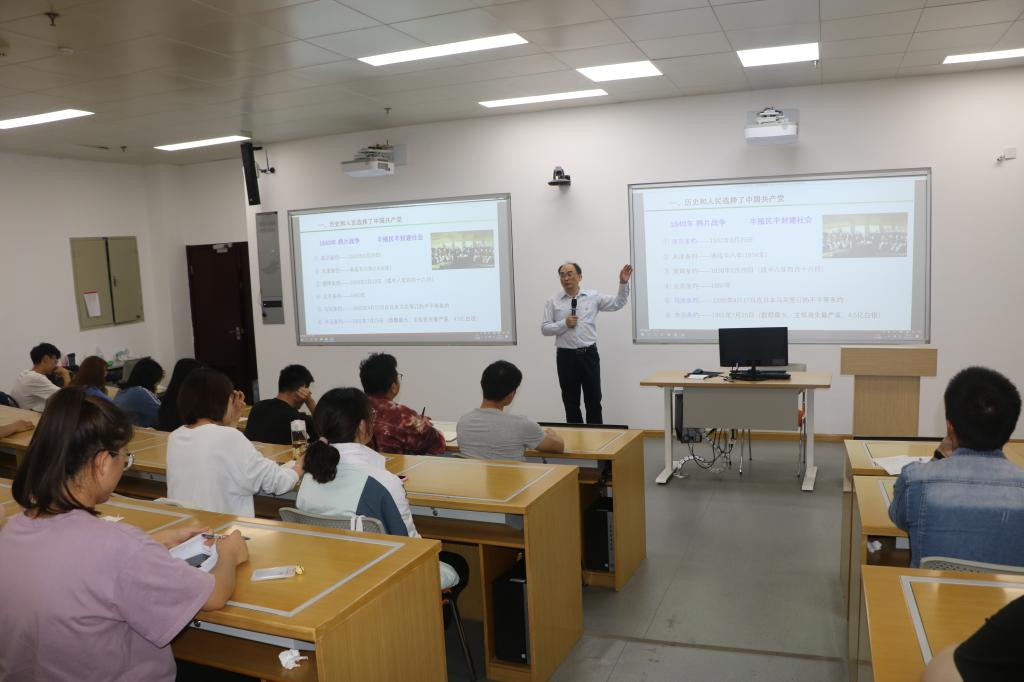 “在五千多年的历史长河中,中华民族曾有过很多机遇,但真正抓住机遇、开创盛世的屈指可数”,活动伊始,孙明以习近平总书记《紧紧抓住大有可为的历史机遇期》内容为引,讲述了洋务运动等中国近代以来的历次救国救亡运动,并分析了它们的积极意义及失败原因。他讲到,直至中国共产党的诞生,确立了“为中国人民谋幸福、为中华民族谋复兴”的初心使命,中国历史才进入长治久安的时期,开始了中华民族复兴的新纪元。