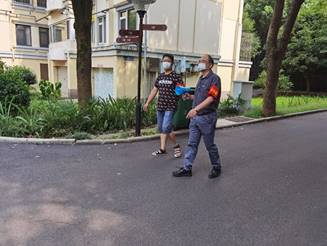 8月6日下午,孙明教授手持话筒穿梭在南苑、北苑的居民楼栋之间,提醒居民“戴口罩、勤洗手和保持社交距离”,炎热的天气使他很快就汗流浃背,但为了疫情防控的安全他一分钟也不愿停歇脚步。随后周菲老师也很快加入到下沉党员疫情防控宣传队伍中来。在西社区办公室里,姚家玲教授已经连续打了几小时的信息摸排电话,逐户调研了解居民核酸采样的情况,努力做到不落下一人,为疫情防控积极贡献力量。