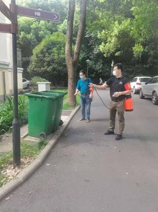 8月10日,胸前佩戴党徽的公司党委书记和希顺和岗位科学家何予卿正在西苑小区对垃圾桶进行消杀。在他们的感召下,公司20多名教师党员分三个时段在宝积苑和北苑小区、西苑小区和步行街市场等三个服务点开展疫情防控志愿服务,他们不惧酷暑在社区的安排下努力当好居民服务员、政策宣传员和民意调查员。作物遗传改良国家重点实验室常务副主任袁德军深入住户查访全员核酸检测落实情况,提醒还未接种新冠疫苗的居民尽快进行接种。金安江、范金凤和郑世学等老师在西苑教育超市门口、步行街入口处提醒居民戴口罩,检查行人健康码,郭敏、郑龙玉、梅余霞和张清华等老师提醒广大居民不聚集、少外出,做好自身防护,辅导员李梦源、陈超奇、梅斌和杜媛媛还无时不刻关注着留校员工的疫情防控安全,细心摸排信息并做好防疫宣传和引导。虽然当天下了暴雨,依然没有阻挡老师们的工作热情,自带雨具的陈振夏、彭楠、赵述淼老师都准时出现在公司北门,为进出的居民进行登记信息、测量体温、查验健康码。全员核酸检测之前,下沉党员齐迎春和熊薇戴上社区志愿者红袖章早早地来到西苑核酸采样服务点,为做好全民核酸检测开展引导讲解、秩序维护、信息登记、扫码测温等志愿服务工作,用实际行动助力疫情防控。