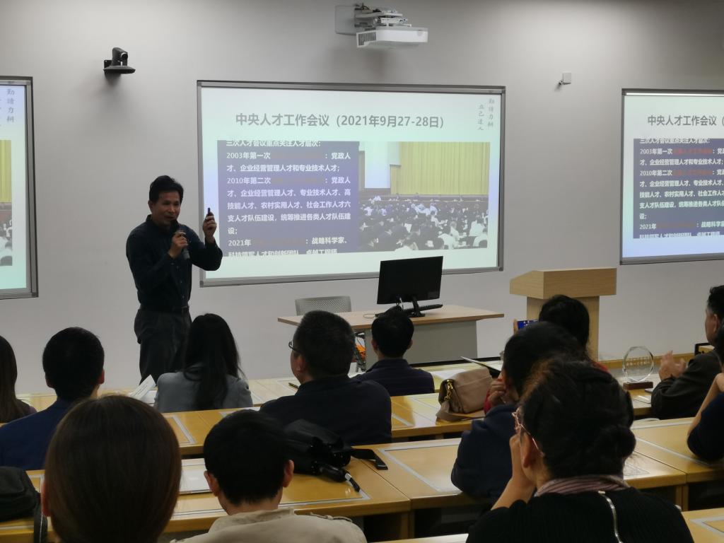 10月14日下午,生科公司党委书记和希顺同志面向全院教师,以“学习贯彻中央人才工作会议精神——深入实施新时代人才强国战略 加快建设世界重要人才中心和创新高地”为主题讲授了一堂党课。