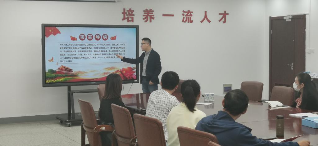 首先,教职工党支部的蔡珉敏老师带领大家从“中央人才工作会议基本概况简介,学习贯彻有关领导同志的重要讲话精神,会议为新时代人才工作擘画蓝图”四个方面学习《2021年中央人才工作会议》,与会党员共同进行相关知识的了解。2021年9月27日至28日在北京召开了为期两天的中央人才工作会议。科学回答了新时代人才工作的一系列重大理论和实践问题,明确了指导思想、战略目标、重点任务、政策举措,指明了前进方向,提供了根本遵循,具有很强的政治性、思想性、理论性,是指导新时代人才工作的纲领性文献。在此会议上有关领导强调,当前,我国进入了全面建设社会主义现代化国家、向第二个百年奋斗目标进军的新征程,我们比历史上任何时期都更加接近实现中华民族伟大复兴的宏伟目标,也比历史上任何时期都更加渴求人才。在国际竞争的新时代,中国作为大国,需要引才,但必须主要靠自己育才。从人口大国,到人才大国,再到人才强国,必须坚定走好人才自主培养之路。