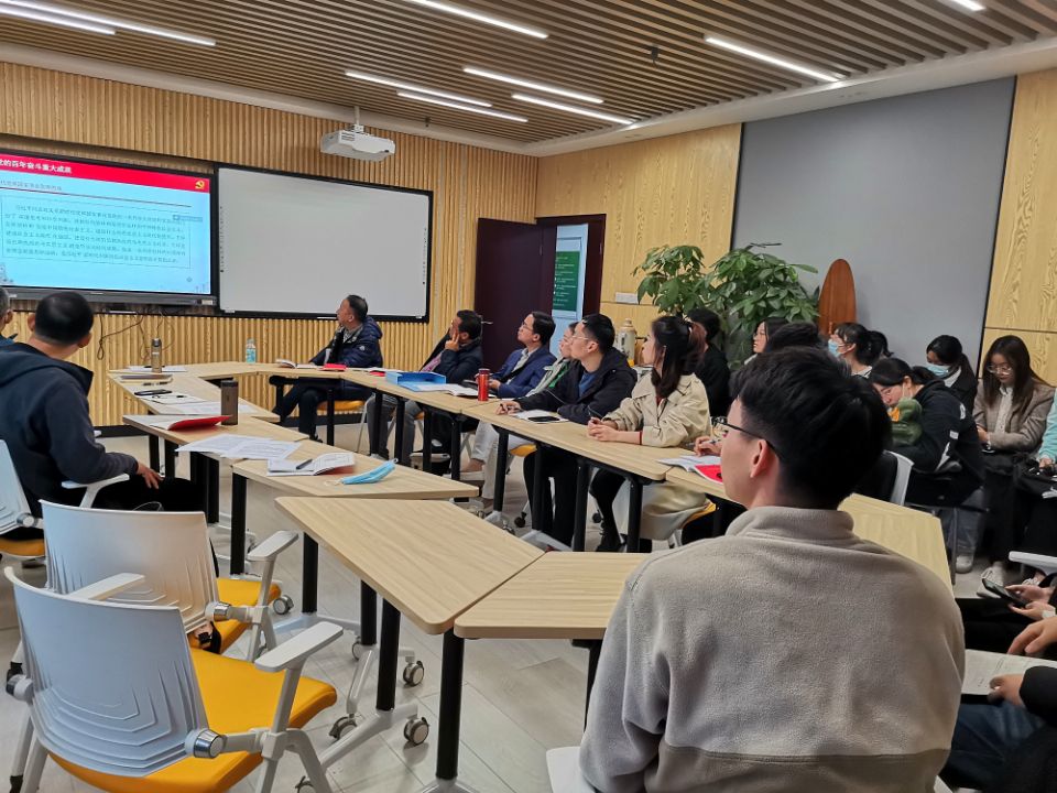 参与师生党员针对《十九届六中全会公告》和《中共中央关于党的百年奋斗重大成就和历史经验的决议》纷纷发表个人的学习心得。董霆斐同学表示:“党史学习是十分重要的,而在党的历史发展到今天,在全面建设社会主义现代化的方面,我们这一代年轻人应当更加努力和奋斗,凭借自己的能力为党的发展做出贡献”;彭楠老师表示:“中国共产党有着一个优良传统,那就是善于总结,并提出如何发展,这项优良的传统是需要进一步继承和发展的”。现场讨论的气氛十分热烈。