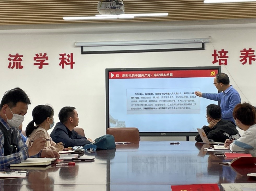 领学结束后,教工支部的孙明同志与师生分享了自己心得感悟。孙明同志结合百年党史,提示我们以史为鉴,领悟党的三个历史决议的提出缘由与历史内涵。1945年4月中共六届七中全会《关于若干历史问题的决议》阐述了“左”倾错误,1981年6月中共十一届六中全会《关于建国以来党的若干历史问题的决议》全面总结了新中国成立以后社会主义革命和建设的历史经验。“我们相信,本次《决议》也将像历史上的两次决议一样,激励我党意气风发走向未来。”孙明说。