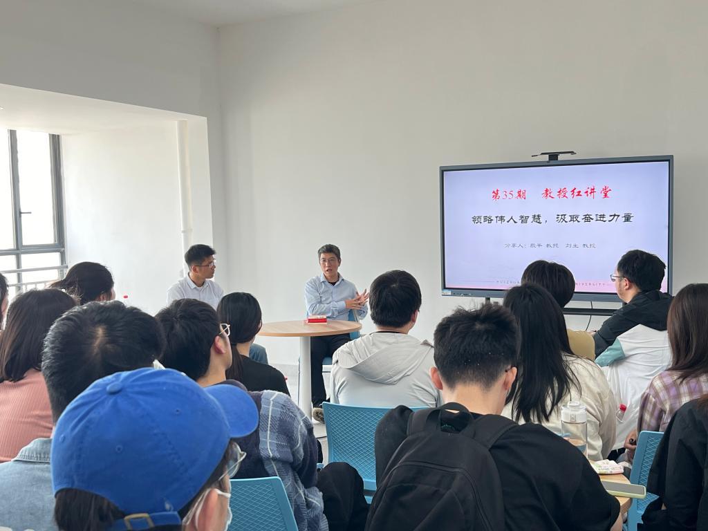 (通讯员 耿奥涵 王庆鲁)近日,bv伟德国际1946殷平教授、刘主教授在襄阳书院做客第35期“教授红讲堂”,以“领略伟人智慧,汲取奋进力量”为主题,与同学们面对面交流红色书籍阅读体会,结合科研与生活实际,引导同学们从经典中学习伟人智慧,汲取成长奋进力量。