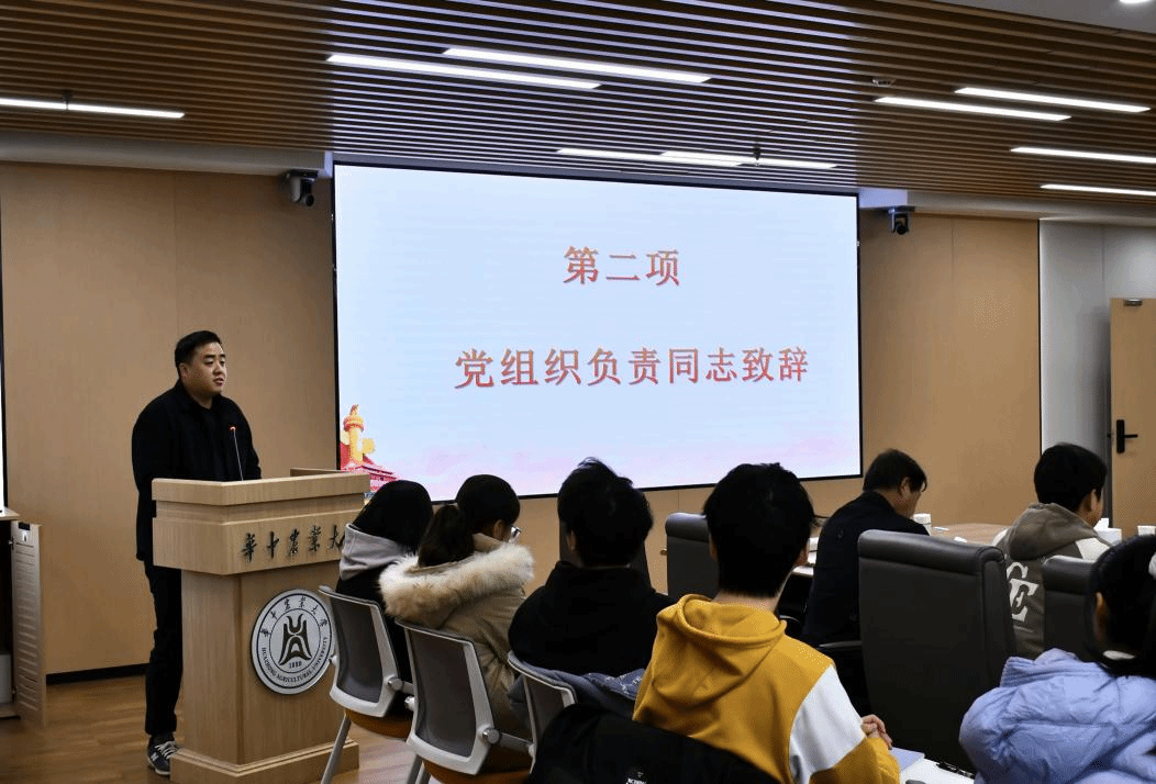 生物工程本科生第二党支部窦涵宇作为预备党员代表进行发言。她首先回顾了向党组织靠拢的历程,表达了对党组织和党员的深刻认识,并代表新一批预备党员作出庄严承诺:一是加强学习党的创新理论知识,不断提升党性修养与理论水平;二是坚定理想信念,响应习近平总书记的号召,厚植爱农情怀,练就兴农本领,立足专业基础,为党的事业奋斗终身;三是牢记党的宗旨,不断提高自己为同学服务的本领和能力,从思想上引领同学们心怀家国天下,从行动上积极奉献与服务同学,充分发挥党员的带头作用。