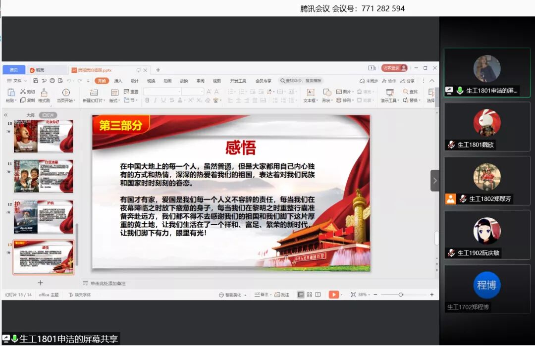 2021年3月5日16:00,生物工程本科生第一党支部于线上开展以“四史”学习“四个一”为主题的学习交流活动,由各位党员同志分享自己在寒假期间阅读、观看“四史”相关书籍和影片时的感想体会。