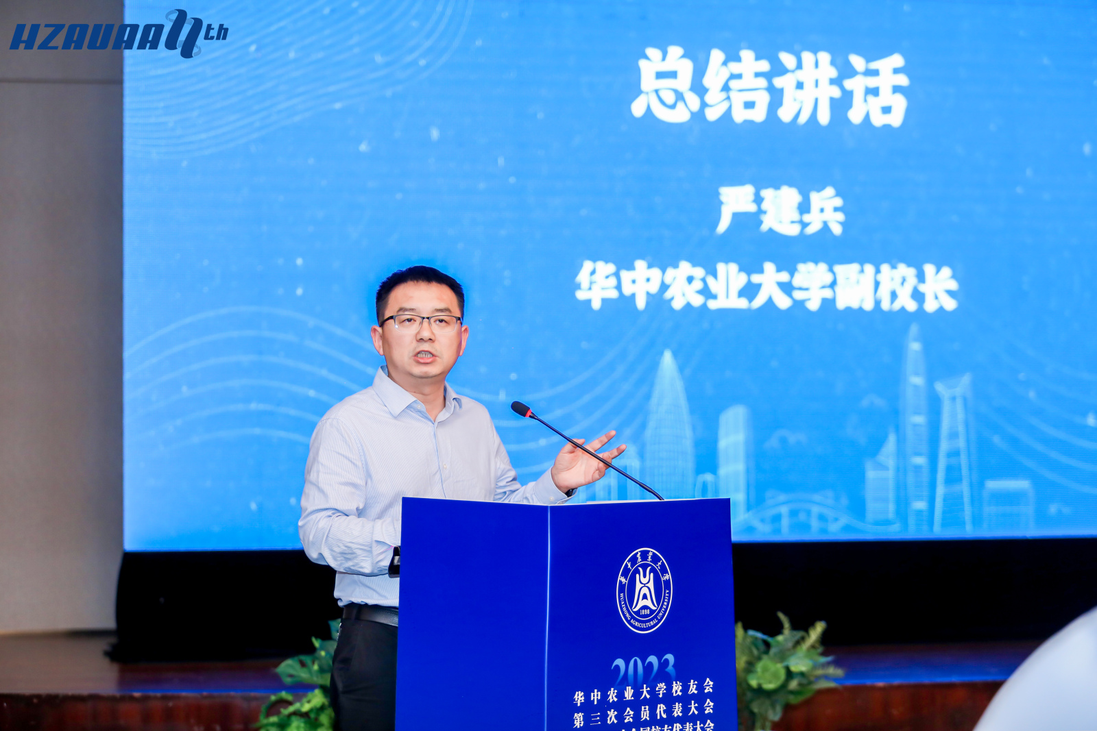 最后,副董事长严建兵做总结讲话,他认为当前是生物技术加速演进、生命健康需求快速增长、生物产业迅猛发展的重要机遇期,希望以此次论坛为新的出发点,凝聚员工力量,联结母校与员工成为情感共同体、价值共同体和发展共同体,围绕“四个面向”实现员工与母校创新链、产业链、人才链、资金链的深度融合,共同助力生命健康行业发展,打造生命科学领域国家战略科技的华农力量。