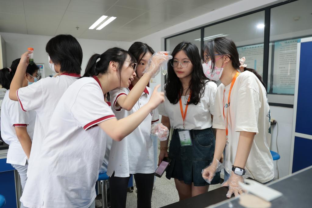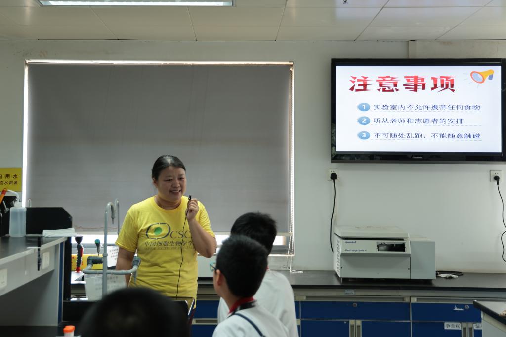 志愿者指导同学们实验操作