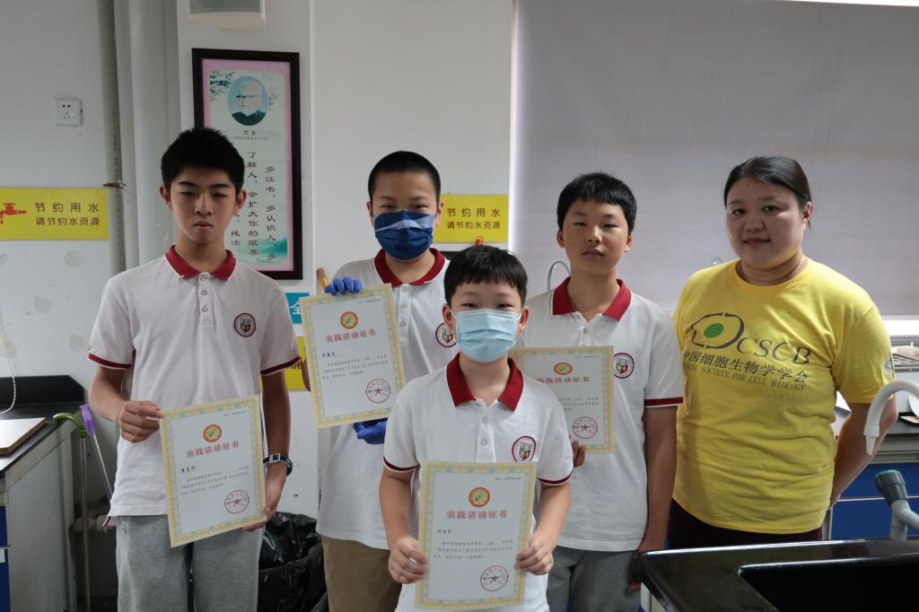 在活动的最后,老师们分别对班级内表现优异的部分同学进行活动实践证书的颁发,袁继红老师表示:“本次活动向同学们讲解了遗传密码DNA的结构特点及功能特性,并让同学们体验了植物DNA提取实验的过程,同学们对于活动十分热情,整个活动过程氛围十分活跃。”