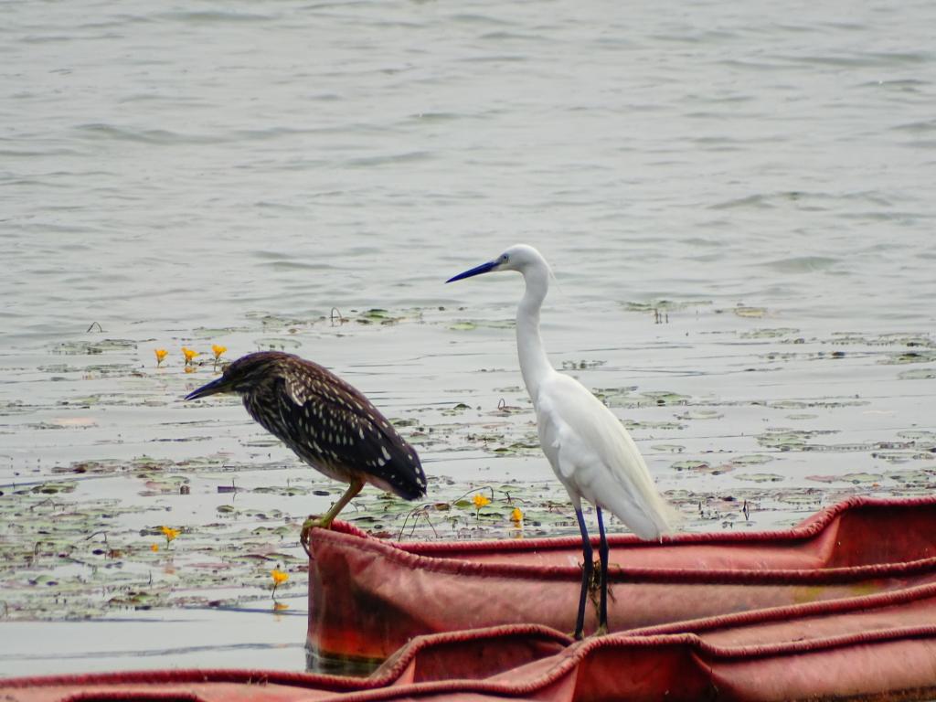 左: 夜鹭亚成鸟 右:白鹭 (吴天沐子 摄)