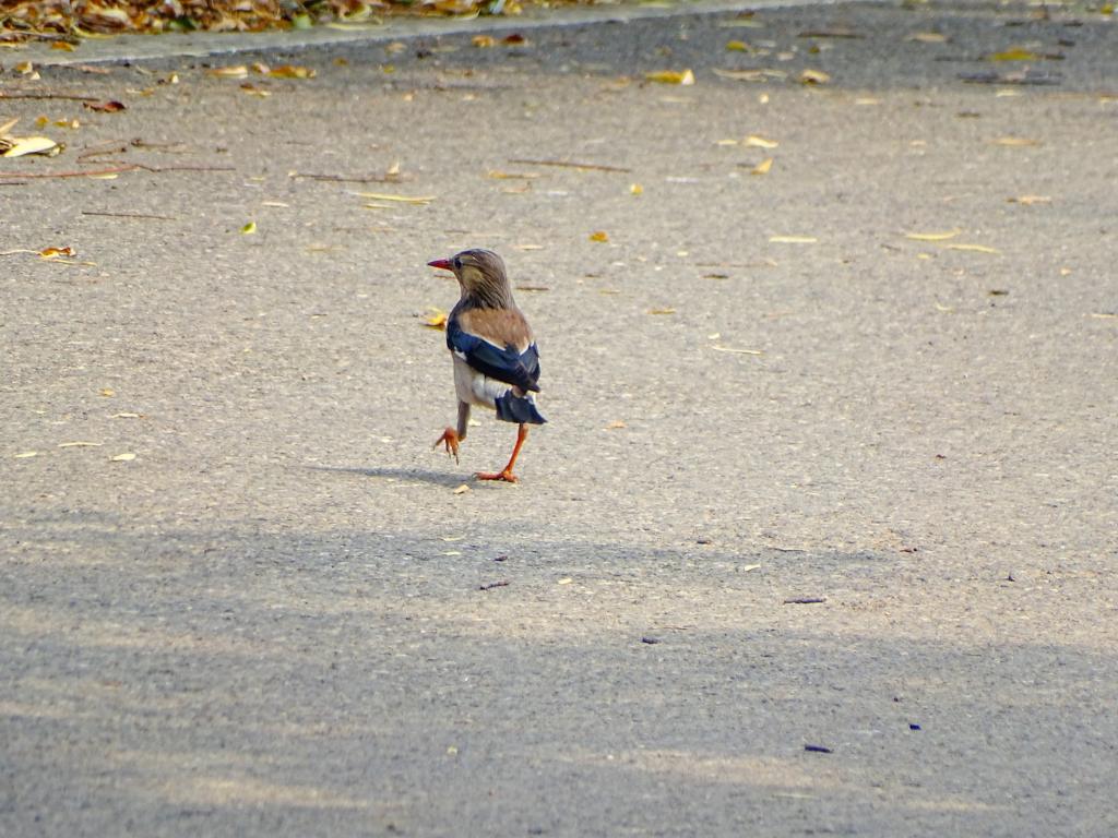 正在路上“狂奔”的丝光椋鸟 (吴天沐子 摄)