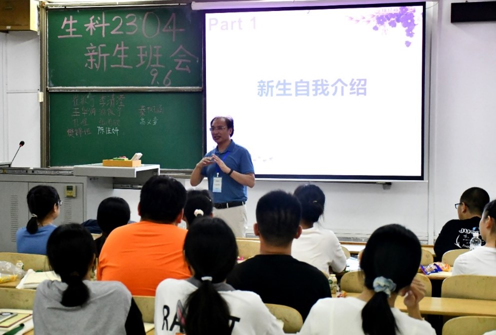 “未来我想要保研,在生命科学的道路上越走越远”,熊立仲经理来到生工2301班时,一位同学正畅谈对华农的憧憬和对未来的期待,班会气氛十分活跃。“大家填志愿之前有没有想清楚生命科学技术是什么?”熊立仲很快与大家交流起来,结合正在进行的国际交流会议,与新生共话生物工程学科前景,勉励大家在大学期间好好去学、好好去探索,把握公司搭建的学术交流平台,找到为之奋斗一生的事业,不断地在人生路上“激扬梦想,追求卓越”。经理熊立仲先后走访了几个新生班级,祝愿新生们能够坚定对自己的信心、对老师们的信心,开心、充实地度过本科时光。