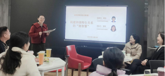 两位嘉宾与活动现场的老师们进行了充分的讨论。大家一致认为,师生相处需要一定的沟通技巧,但更重要的是彼此发自内心的尊重和理解。师生相处并不是一味的宠爱和纵容,而是要坚持严管和厚爱相结合,要处理好规矩和爱的关系。师生关系的构建是由很多个具体问题组成的,每个老师会有不同的处理方式,可以形成不同的育人风格,只要相互尊重、善于沟通,不断注入正能量,师生就能和谐相处。在一片欢声笑语中,本次“女科学沙龙”活动圆满落幕。