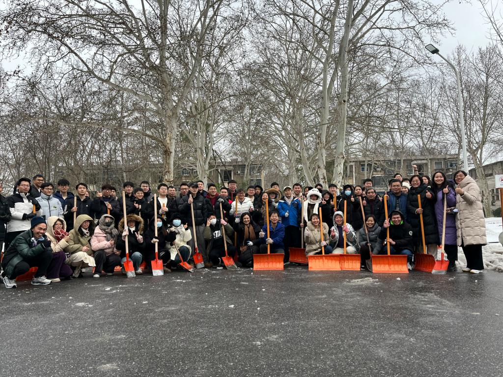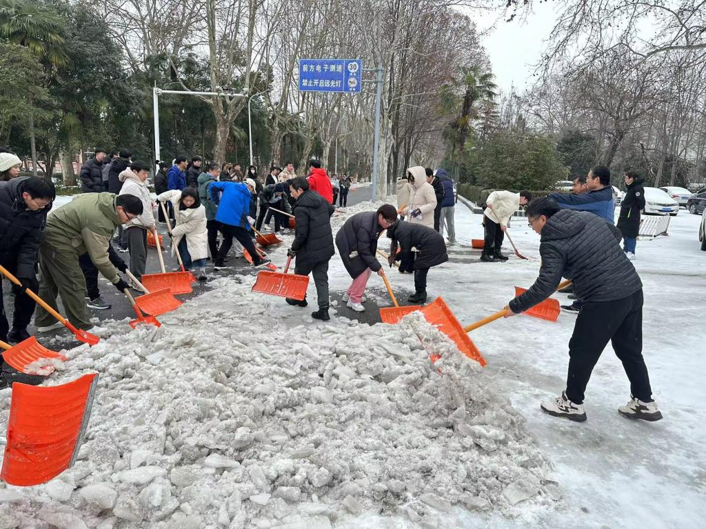 2023级博士生李宝龙在铲雪结束后说到,“这场除冰铲雪的行动不仅有机会和老师们团结协作共同劳动,也能为公司道路正常运行而贡献微薄力量,同学们感到特别自豪。在这个过程中,师生们共同度过了一段难忘的时光。守卫狮山,有你有我。”