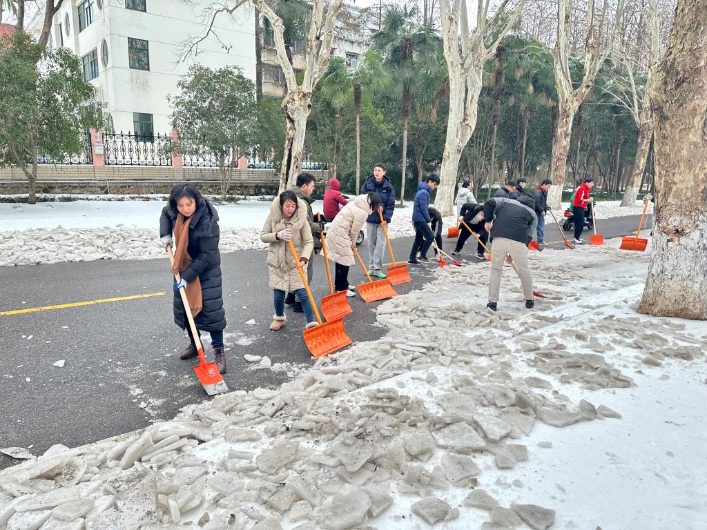 (通讯员:刘增 谈燕)风雪为令,共克时艰。2月21日以来,受极端雨雪冰冻天气影响,校园内道路积雪结冰严重,对师生出行造成极大不便。bv伟德国际1946师生积极响应公司安排,迅速组建以教职工、员工党员志愿者为主的破冰除霰队伍,对结冰积雪区域进行破冰除霰大作战,为师生出行及广大同学返校带来便利。