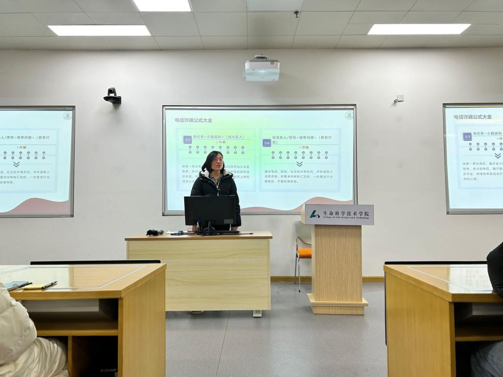 随着信息技术的发展,电信网络诈骗手段不断更新,令人防不胜防。谈燕列举了多种类型案例帮助同学们增强辨别能力,例如常见的网络贷款诈骗、刷单返利诈骗、“杀猪盘”诈骗、冒充电商物流诈骗、冒充熟人或领导诈骗等方式。她指出刷单返利诈骗在校园中盛行,骗子往往以兼职为名诱导同学们进行刷单并以小额返现为诱饵,诱惑同学们投入大量的资金再进行拉黑诈骗。