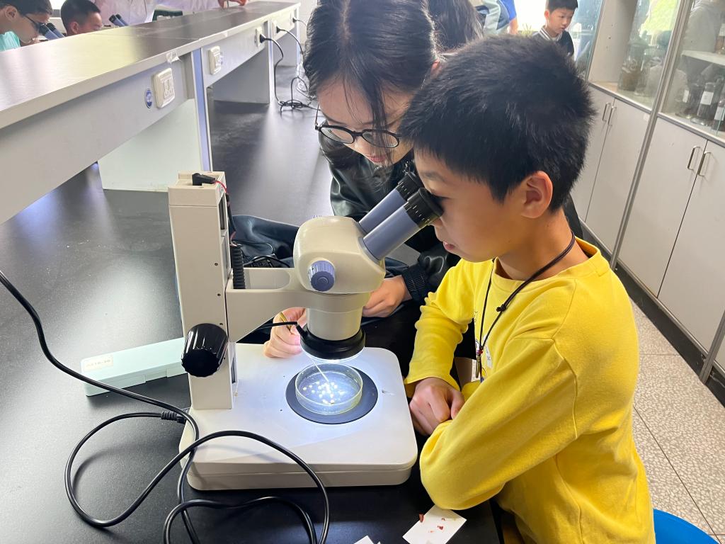 活动伊始,王莉老师为来参加的小朋友们介绍了花的结构,分别介绍了花冠、花萼、花托和花蕊的结构和特点。她指出,植物是通过花来完成生殖繁育的,并详细介绍了雄蕊和雌蕊的结构功能。科普志愿者们带领小朋友们在体式镜下观察了子房里的胚珠。