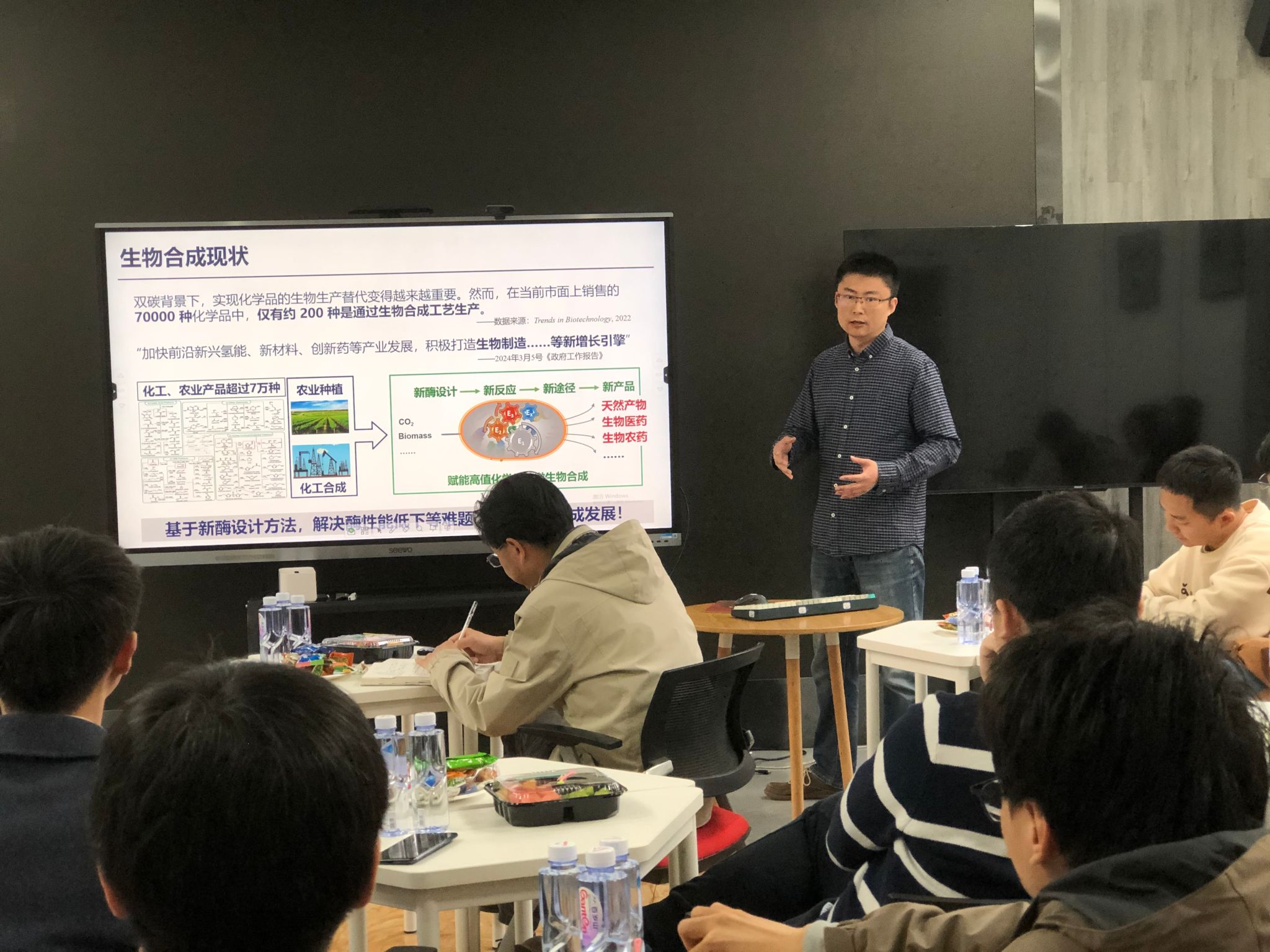 曲戈表示,酶催化剂性能是制约生物合成应用的关键瓶颈。他以“酶促生物合成”为主题,系统介绍了其在生物合成领域的多年研究成果,分享了所在团队在新酶设计方法学开发、新颖生化反应设计以及高值化合物生物合成等方面的工作进展。他还展望了酶智能设计在农业生物制造领域的应用潜力,包括农用高值化合物的生物合成和经济作物性状改良等方向。
