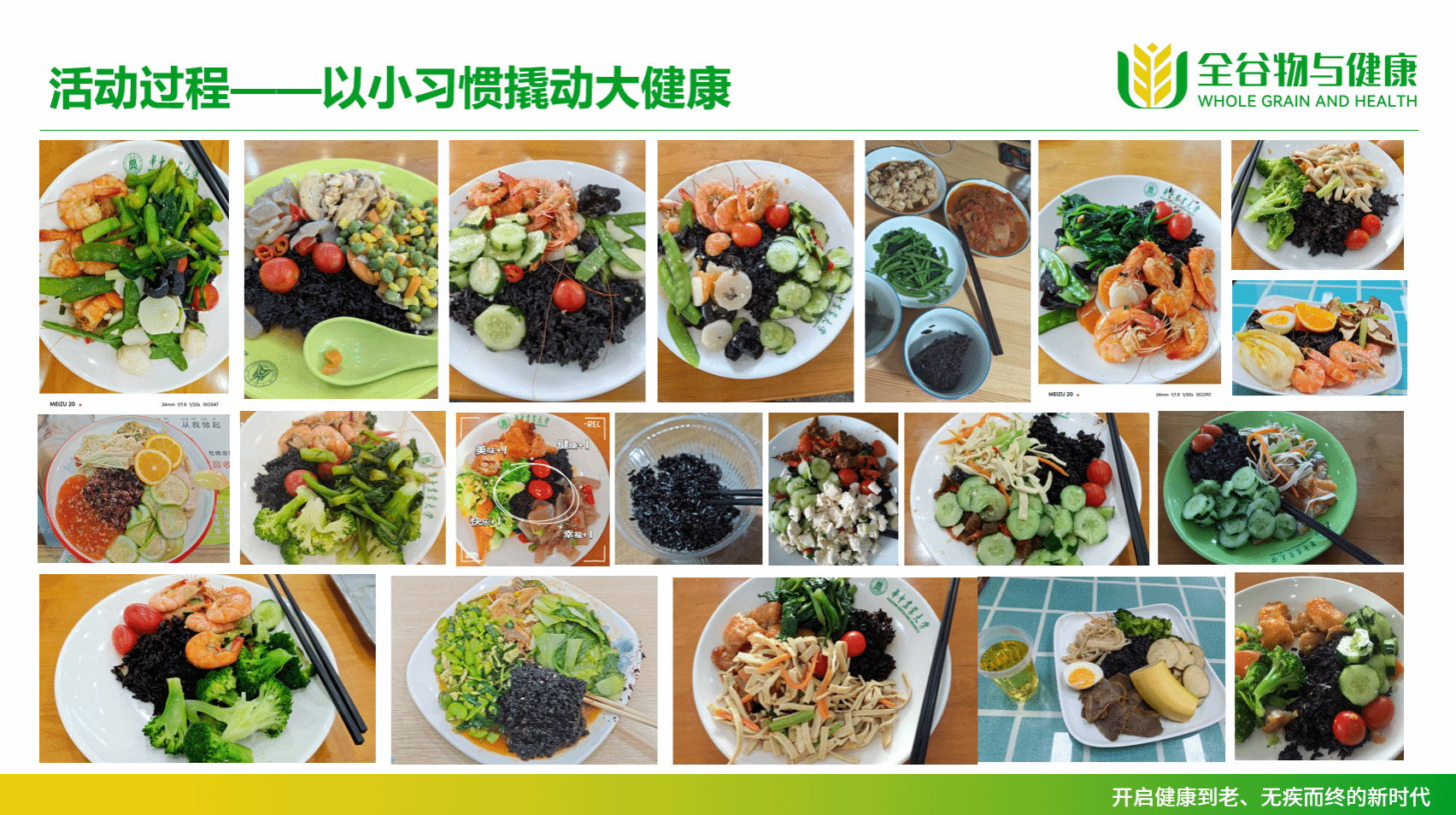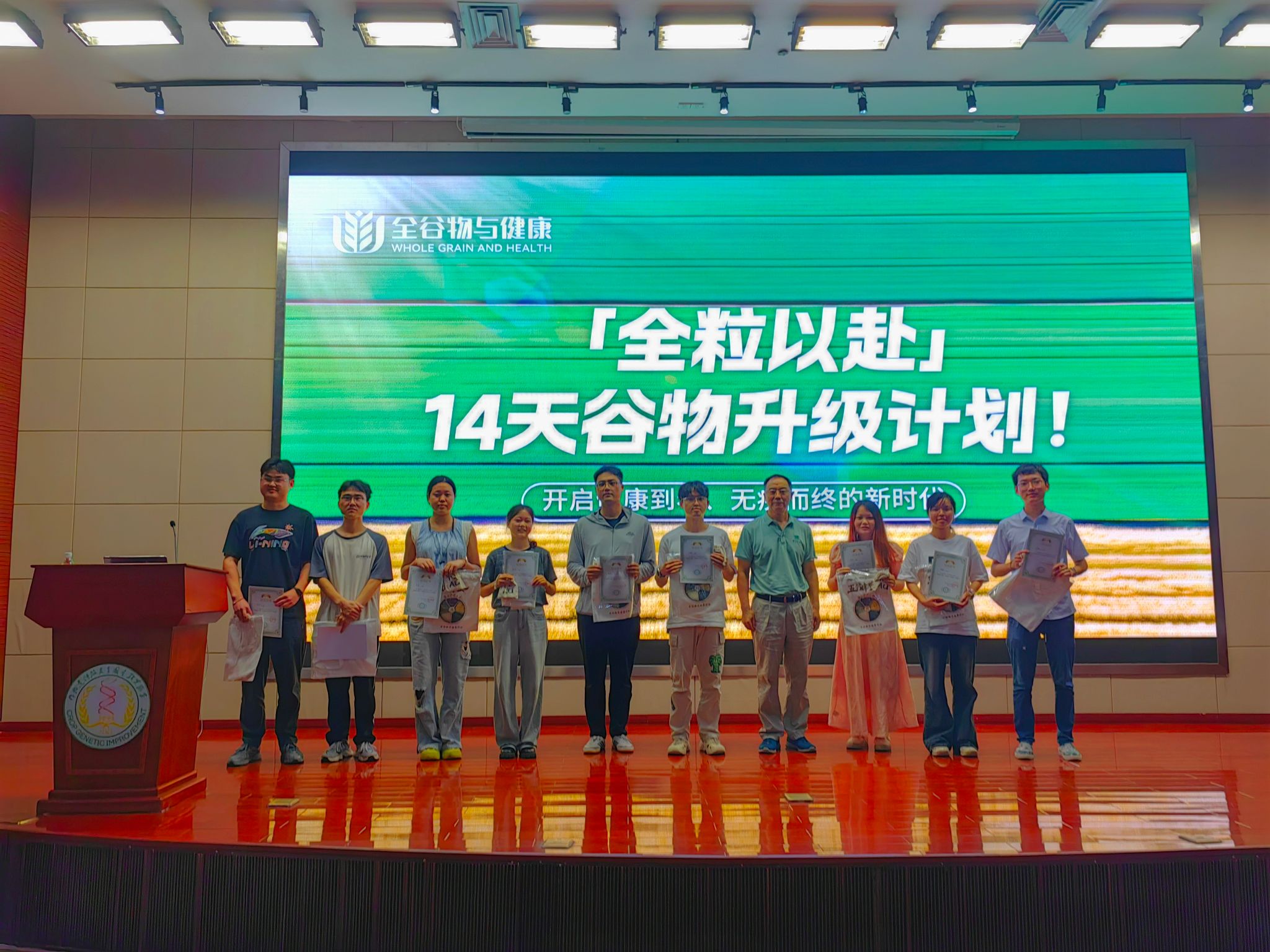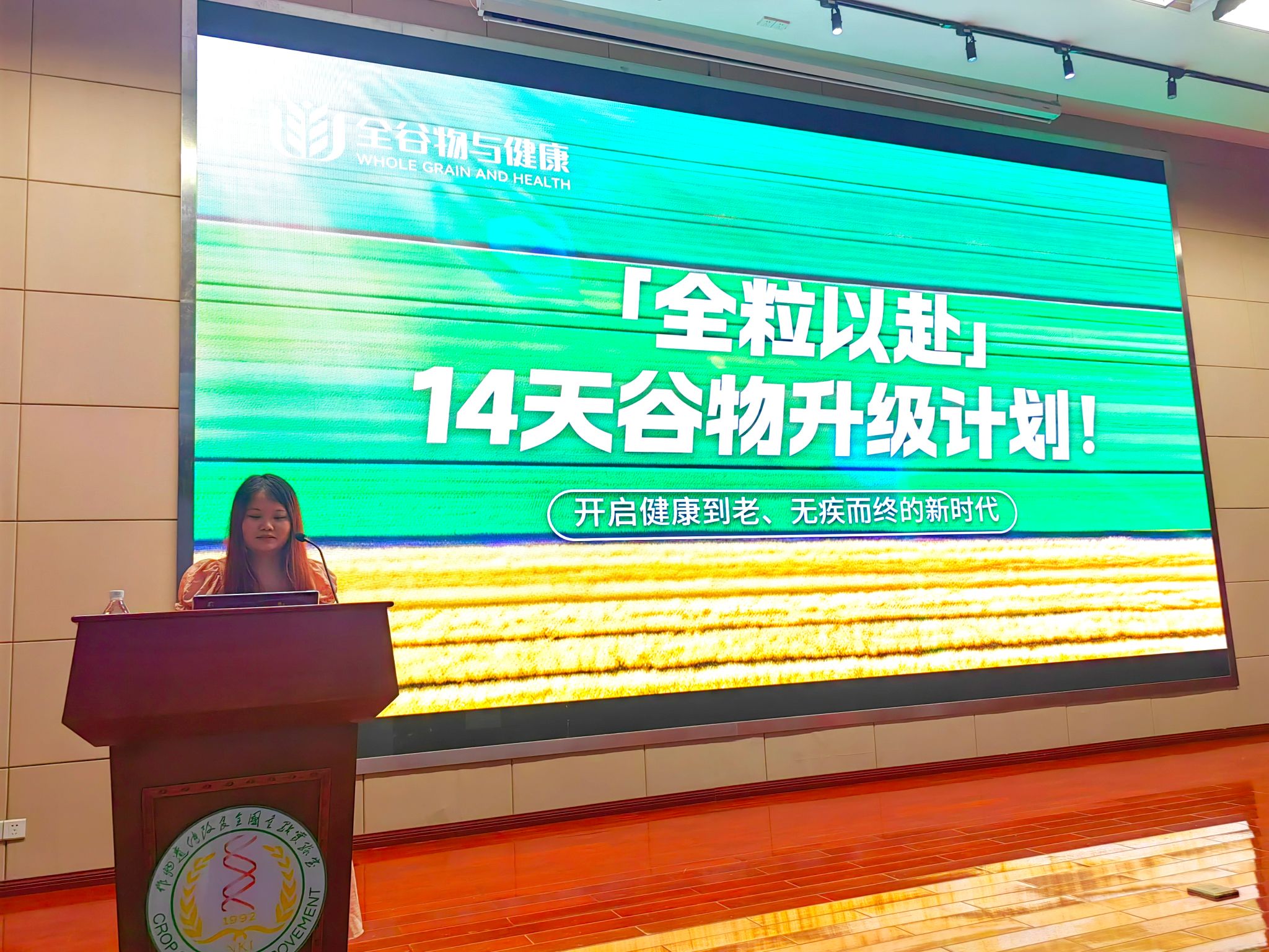 学术报告后,博士研究生向依萌总结前期开展的“全粒以赴14天谷物升级计划!”挑战活动。该活动旨在贯彻落实“国家全谷物行动计划”,推进“主食全谷化、黑米主食化”。活动设计了定期打卡机制,参与者需在14天内累计10天完成每日健康餐打卡。该活动将科学理念和知识融入生活日常,帮助大家理解全谷物在营养健康和农业可持续发展方面的价值。