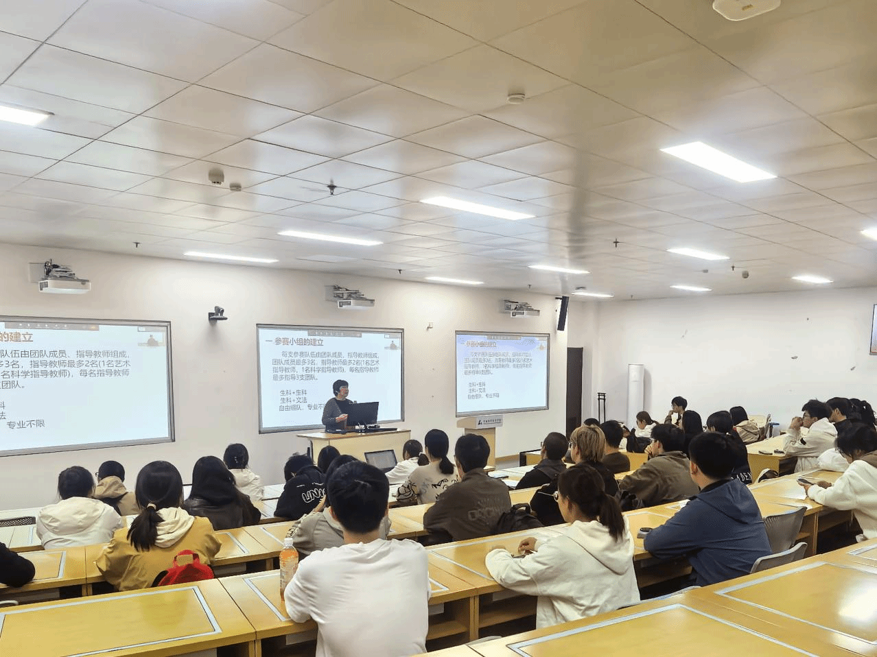 为帮助师生更好地理解创作思路,陈雯莉还分享了往届多件获奖经典案例。她谈到,第一届获奖作品《心香如斯 梅兰竹菊》,以大肠杆菌和红细菌为“颜料”,勾勒出清新雅致的传统意象;第二届《奋进新征程》融合人物奋斗动作与地标元素,色彩鲜明且充满活力;第三届特等奖作品《黏菌的数学智慧》更巧妙引导微生物运动,让菌丝自然轨迹成为“画笔”,展现出独特的动态美感。这些案例为在场师生打开了创意大门,提供了可借鉴的实践方向。