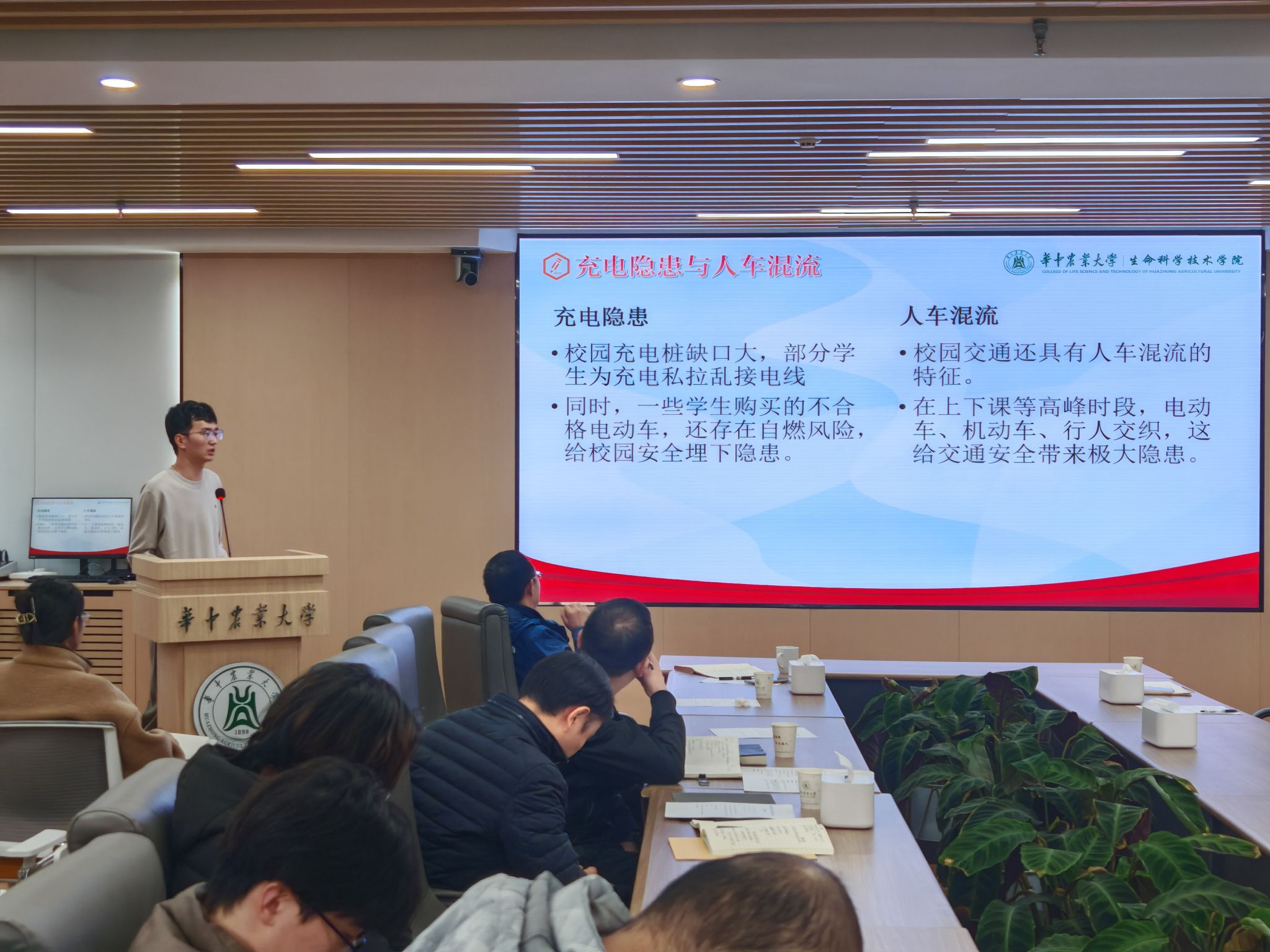 辅导员陈汉唐围绕交通安全、防电信诈骗展开“道路有规则,网络有陷阱,安全警钟长鸣”专题培训。陈汉唐结合典型的交通事故案例,分析校园交通安全存在的隐患以及具体预防措施,重点提醒电动车安全相关要点。在预防电信诈骗方面,针对高校师生高发的“AI换脸冒充”、“学术期刊诈骗”等新型诈骗类型,陈汉唐拆解套路特征、分析受骗成因,并给出“不轻信、不透露、不转账”防范口诀。此外,陈汉唐通过解读各项案例与规定,明确了导师助理作为公司“安全员”和“信息员”的重要职责。