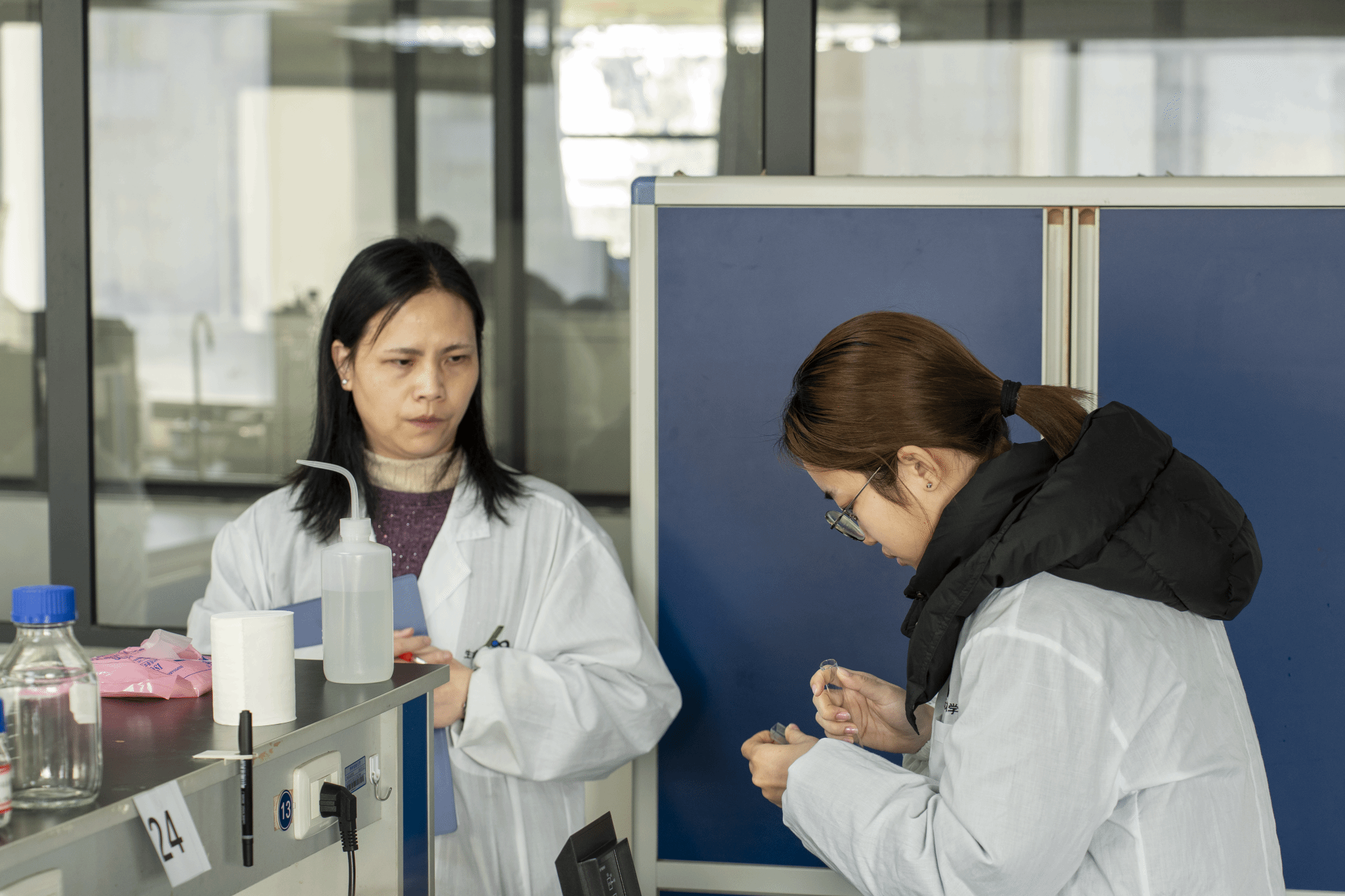 公司徐曙彤教授和马羚副教授担任竞赛评委,对员工操作进行了全程观察与细致评估。评分标准涵盖仪器操作规范性、实验数据准确性、实验记录完整性以及安全意识与实验台整理等方面。徐曙彤教授在赛后点评中指出:“本次竞赛不仅关注员工的基础操作技能,更重视实验过程的逻辑性、规范性和应对突发情况的综合能力。多数同学表现出了良好的实验素养和扎实的训练基础。”