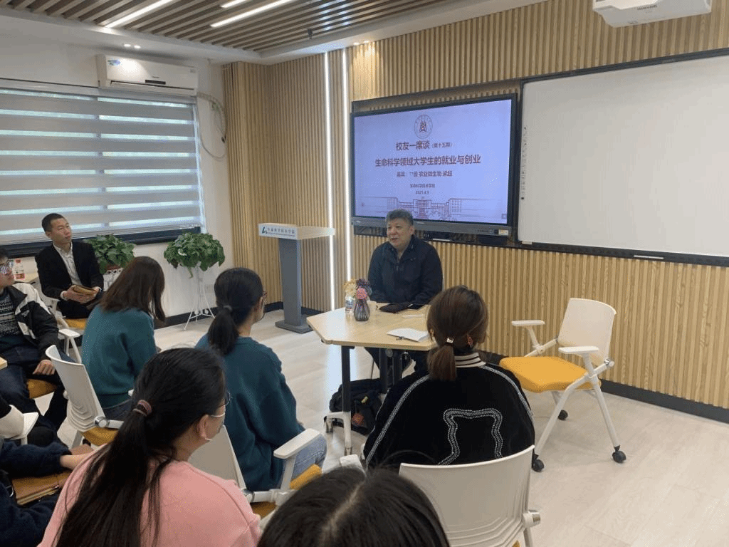 当被问及如何求职以及应对工作中遇到的挑战与难题,梁超结合自己当初在美国求职时的经历,他建议,同学们在空余时间可以寻找实习的机会,丰富知识的同时可以了解行业发展趋势,提前做好职业规划可以减少意外和不确定性。求职简历不能千篇一律、一成不变,应该面对不同公司和岗位具体需求作出与之配备的修改和调整。他指出,在实际工作中遇到超出自己能力范围的问题是很正常的,要敢于迎难而上,理智应对、分析问题、善于沟通。关于后疫情时代生物行业面临的机遇和挑战,他表示,疫情对全球经济都有一定的影响,明天会怎样无法确定,但自己的人生规划一定要明确。当被问到“在求职时该选择大企业还是小公司”时,他表示各有利弊,大企业有成熟的平台和体系,有更多的学习机会,但个人发展的速度相对较慢;小公司个人发展的成长速度相对较快,但是风险较高。因此,更加重要的是找好自我定位、做好个人目标与职业规划。