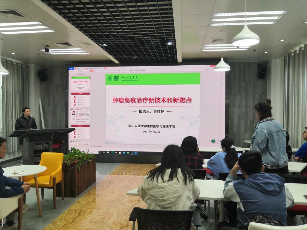 金红林从自己的成长经历和个人期望引入,带领同学们领略了生物医学所关注的科学问题和实际应用价值。他认为,癌症一直是人类健康领域的重要课题之一,生物医学方向借力于临床信息反馈,可以有效地助力攻克癌症治疗领域地关键问题。